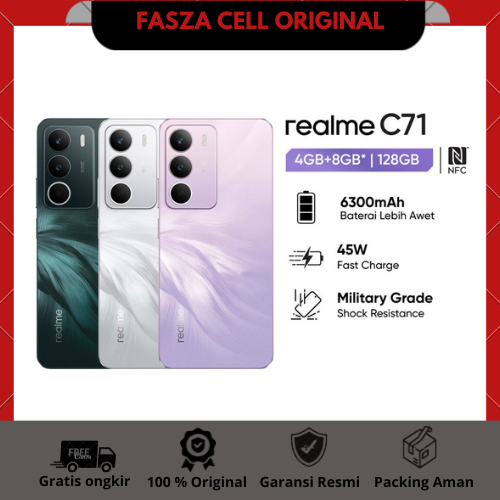 Handphone realme C71 4GB+8GB* |128GB (6300 Baterai | 45W Fast Charge | Military Grade Shock Resistance | NFC) [BL]