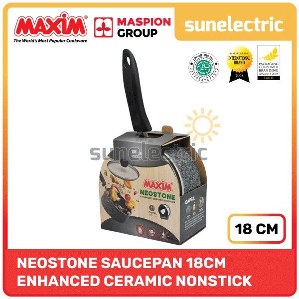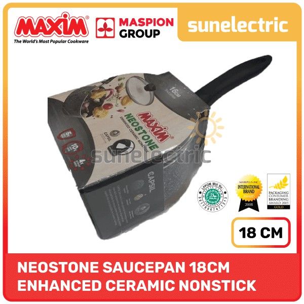 Maxim Neostone Saucepan / Sauce Pan Panci Keramik Teflon Anti Lengket Diameter 18 cm + Tutup Kaca