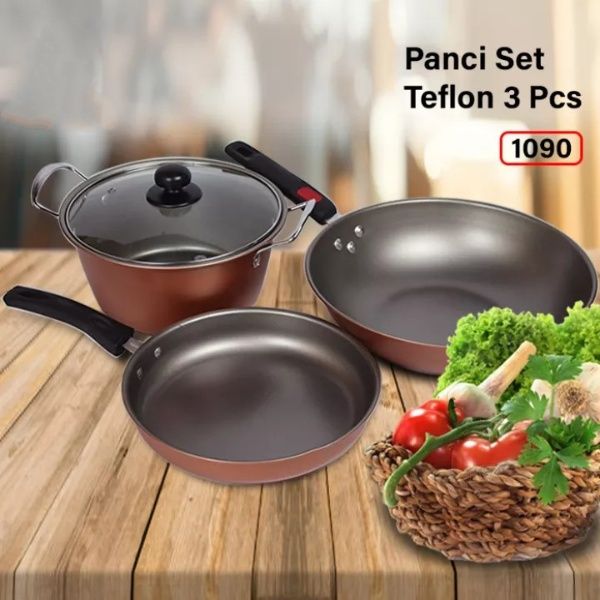 PROMO Panci Set Wajan Penggorengan Teflon Set isi 3 Pcs 1090-Arria Set Panci Teflon - TERMURAH