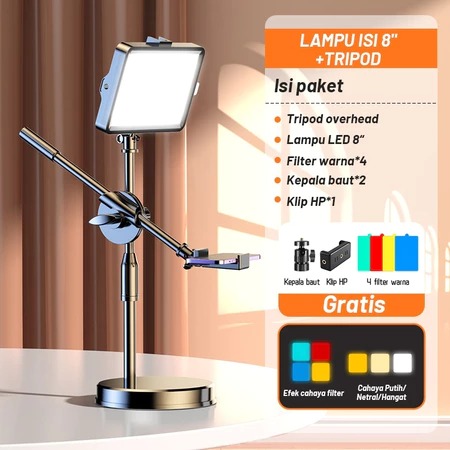 Overhead Phone Stand Tripod + Led Lampu Stand Holder Phone Holder Bracket 360° - cok270