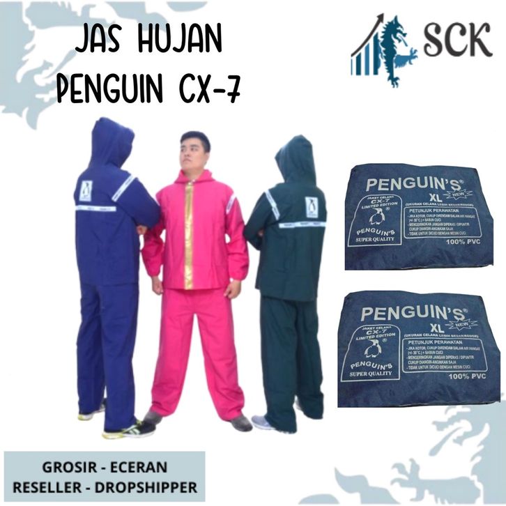 Jas Hujan PENGUIN Cx-7 Proyek Premium Jaket Celana Cx-7 X / Setelan MANTl Pria Wanita Dewasa Jumbo - sckmenwear9rOSIR