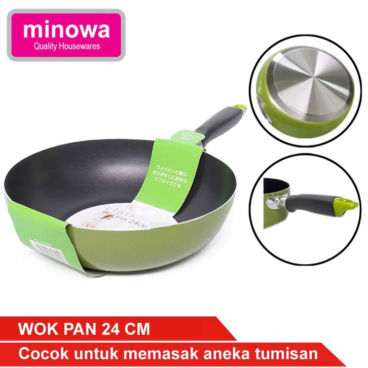 Minowa Teflon/Wajan Tumis 24 CM Wok Pan Hijau