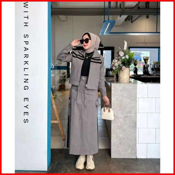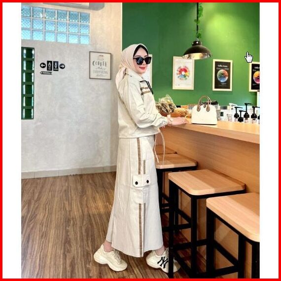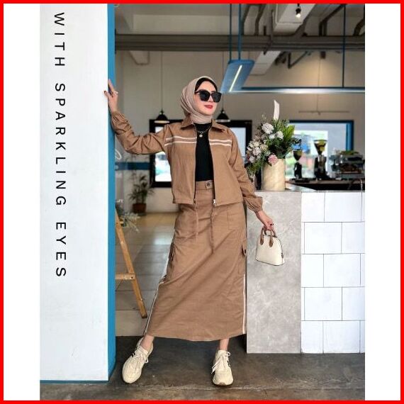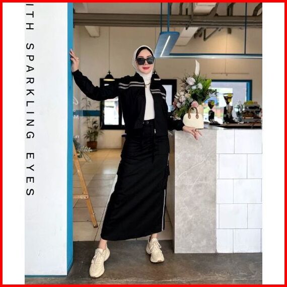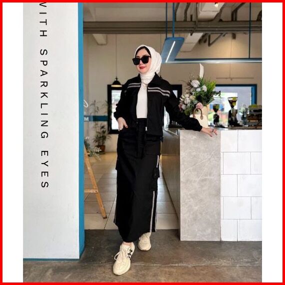 Setelan Wanita Jaket List Dada Rok Cargo Terbaru 2024 Korean Style