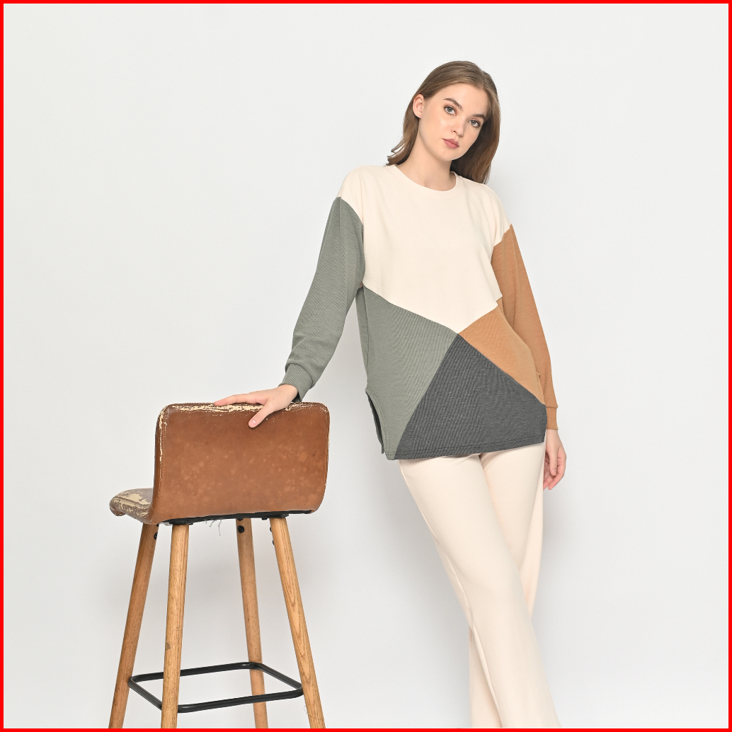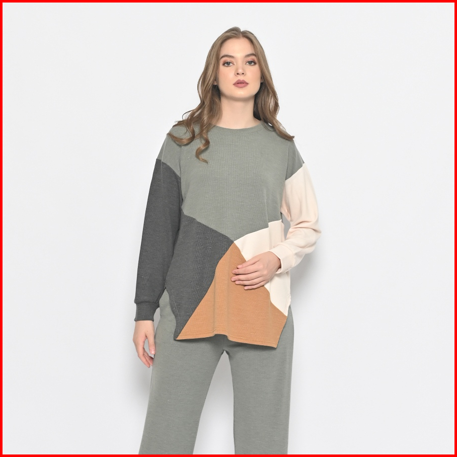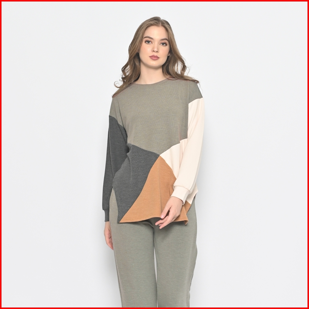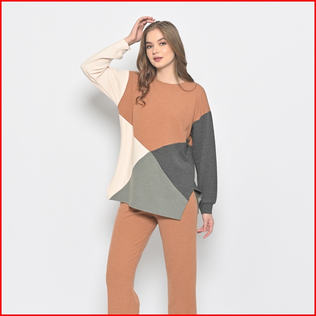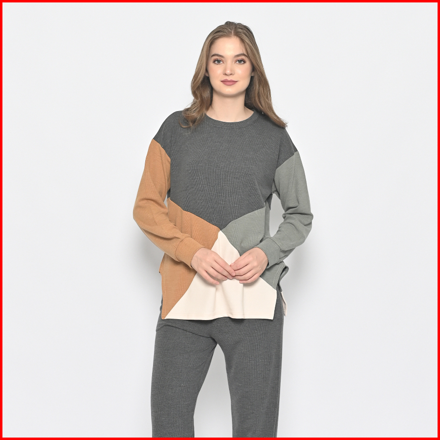 Queentin Setelan Wanita Kombinasi 0310 Stretch Snowy Knit Polos Kombinasi Lengan Panjang