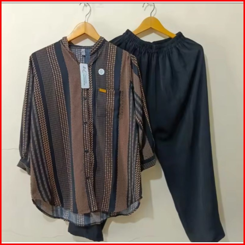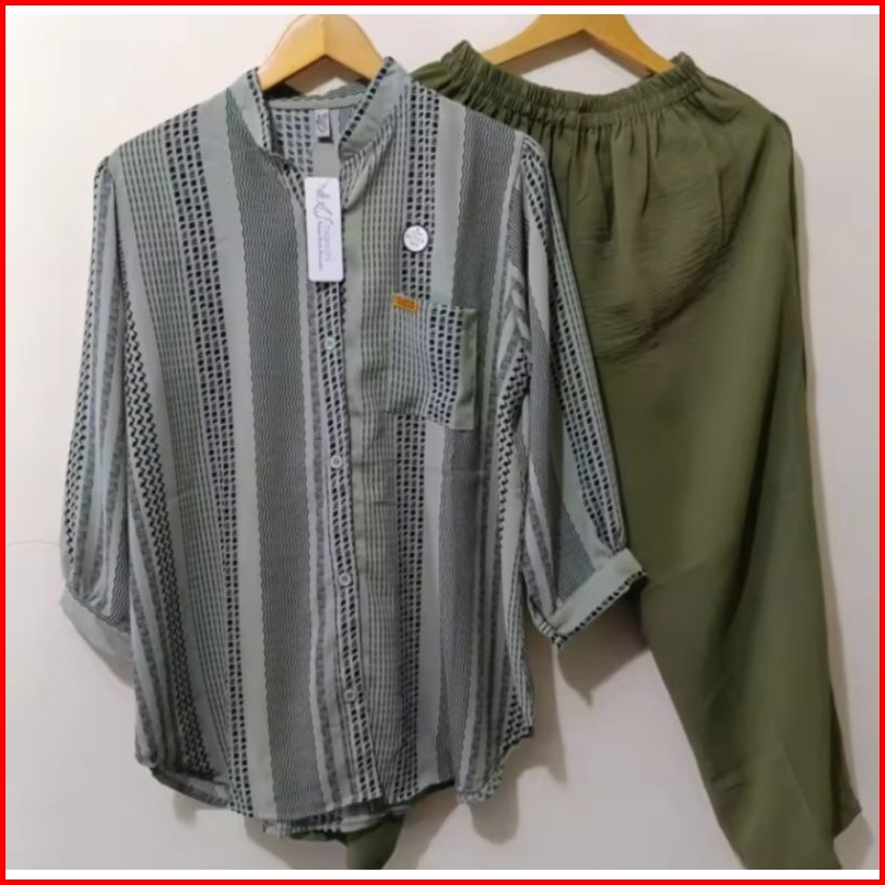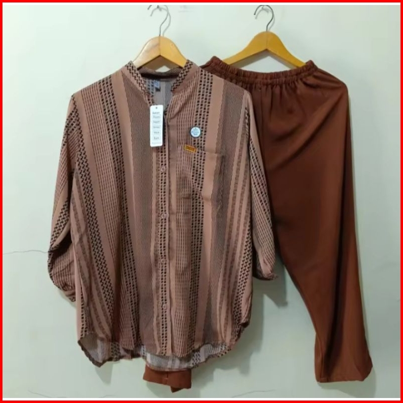 Setelan Wanita Dewasa Crinkle Motif Songket Viral Kekinian One Set Wanita Terbaru 2024