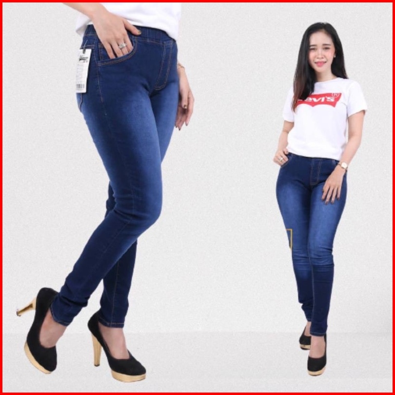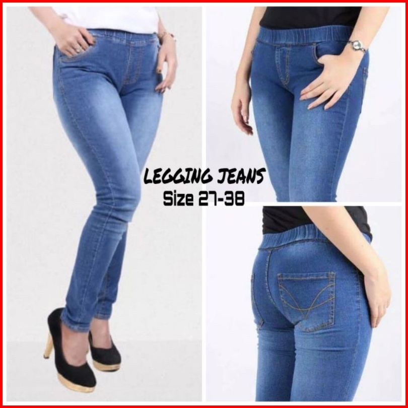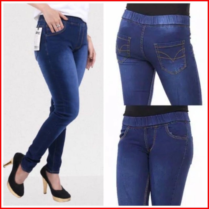 Celana Jegging Jeans Karet Pinggang Slimfit Celana Cewek Legging