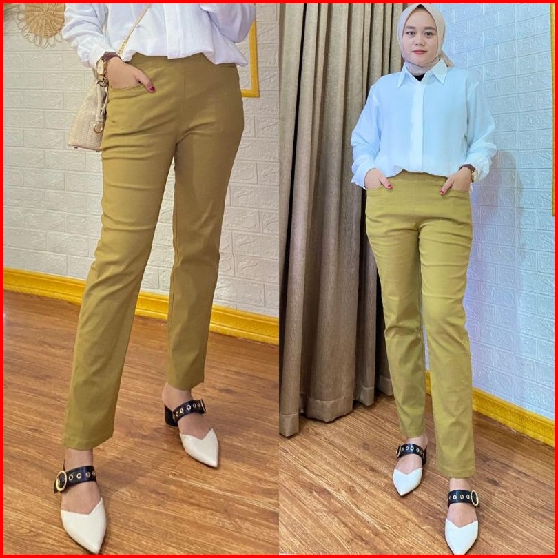 Office Pants Bahan Soft Jeans Strecht Melar Premium Celana Kerja Kantor Wanita Nyaman Panjang
