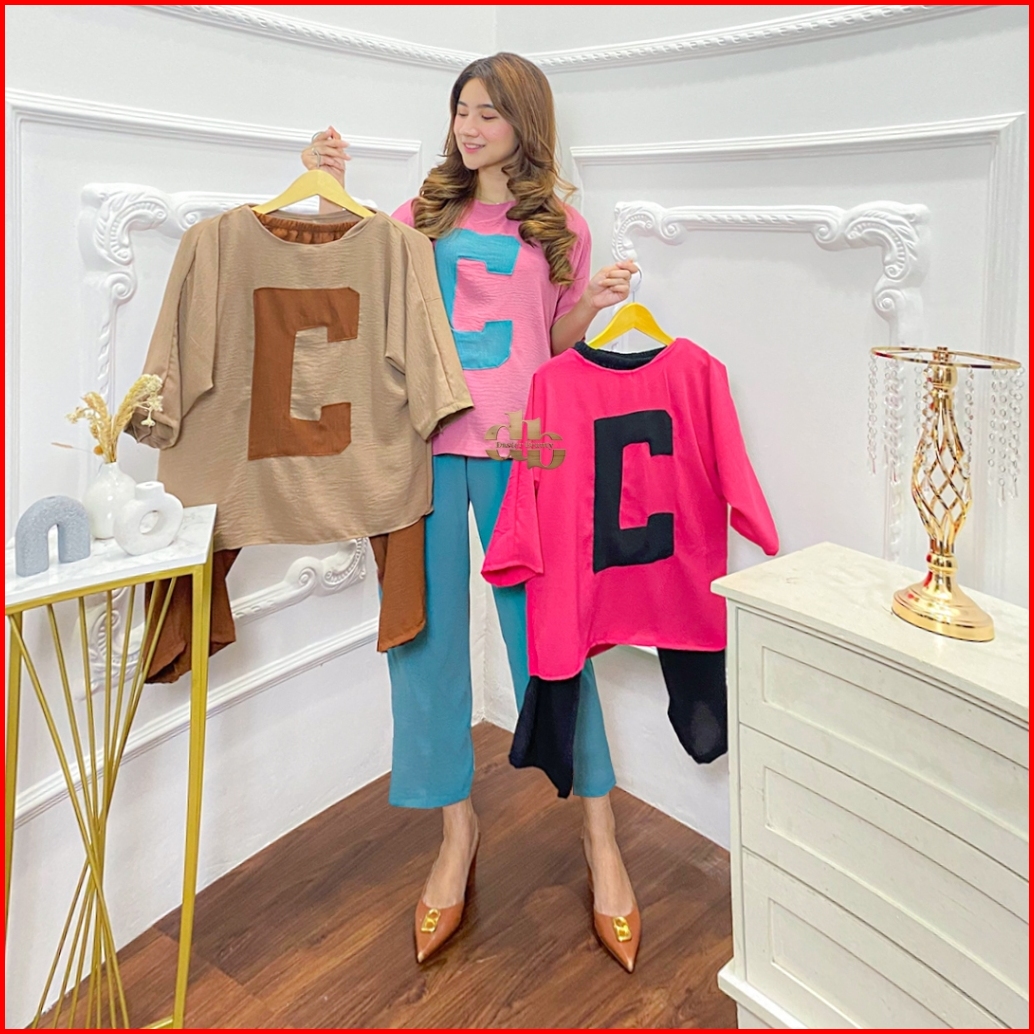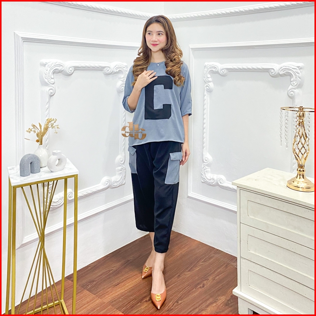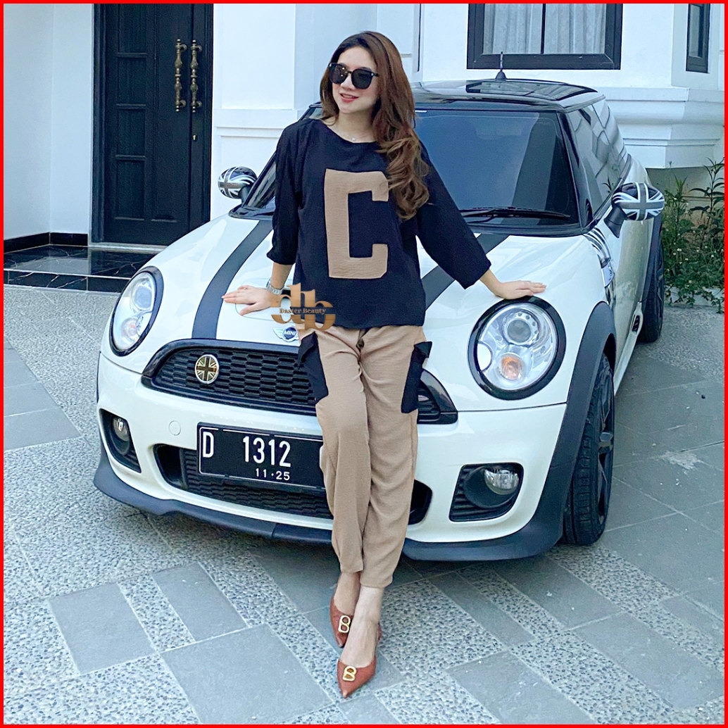 Beautyhijab - Cantika Setelan Wanita One Set Kekinian Terbaru 2024 Lengan 3 4 Crinkle Nyaman Santai
