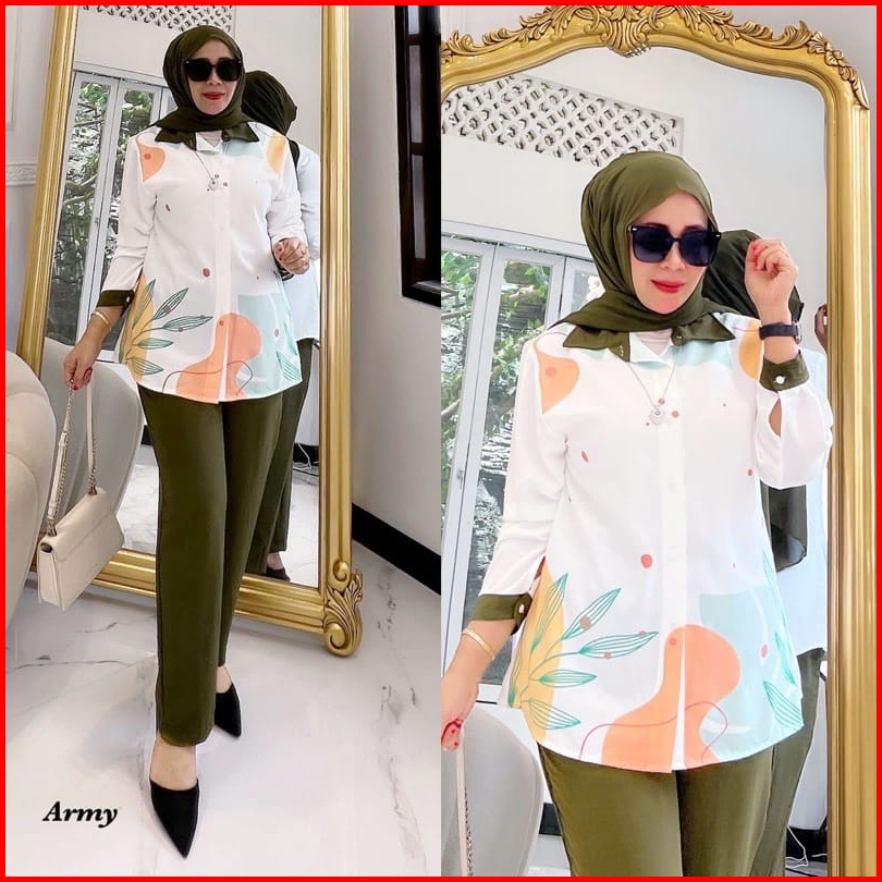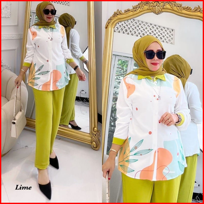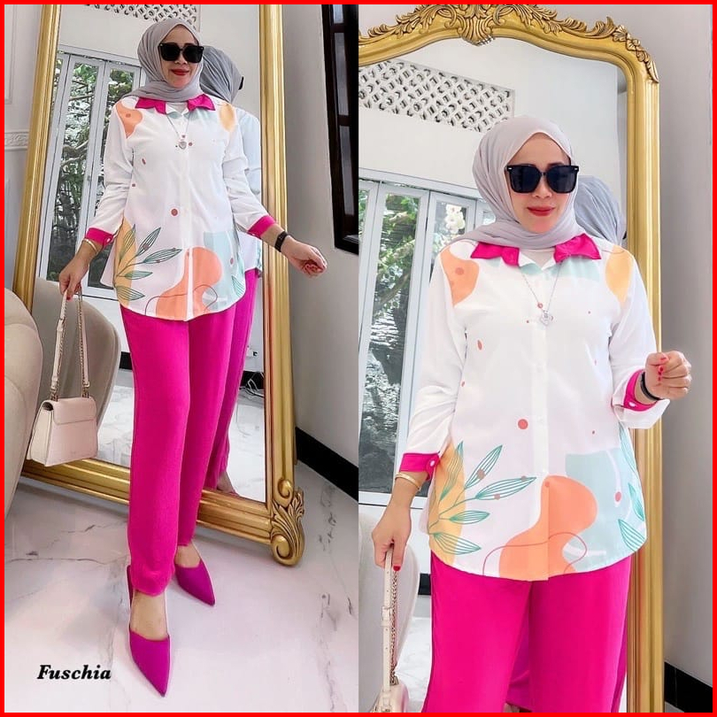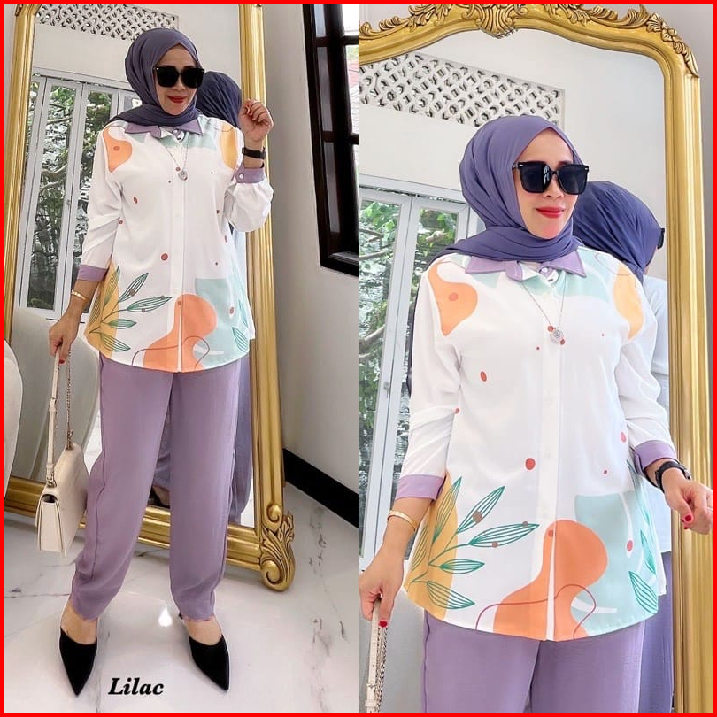 Setelan Kemeja Wanita Sablon Terbaru 2023 Setelan Wanita Crinkel Premium Setelan Wanita Terbaru Kekinian 2023-2024