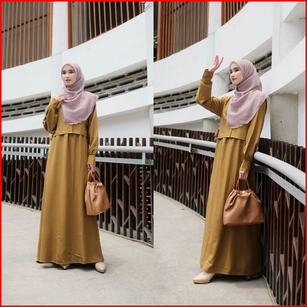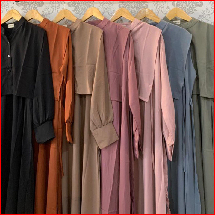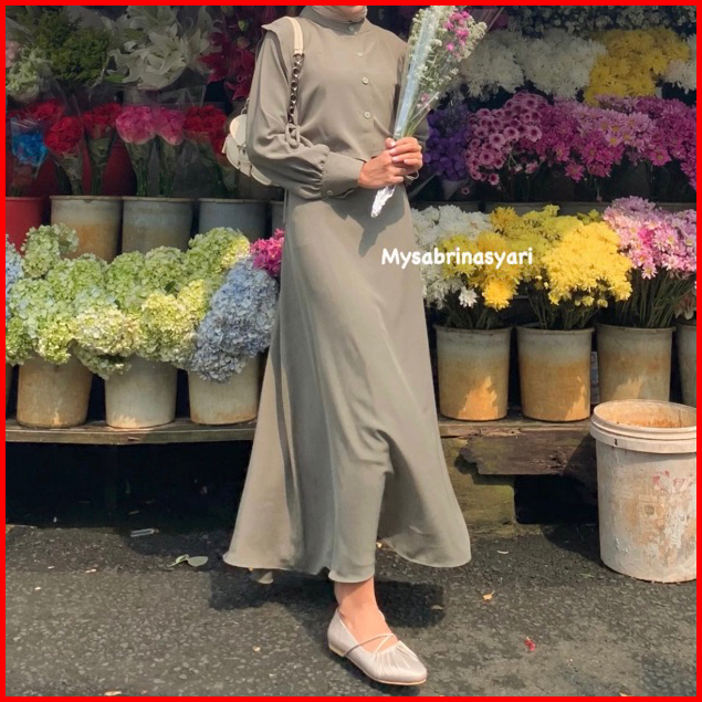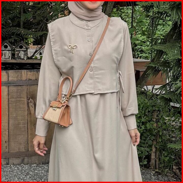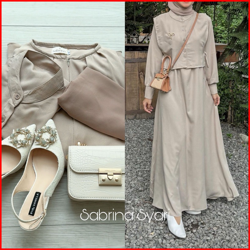 Tiffany Dress By Sabrina - Gamis Polos Vest Rompi Bahan Shakila Silk Coksu Seagreen Size M Xl