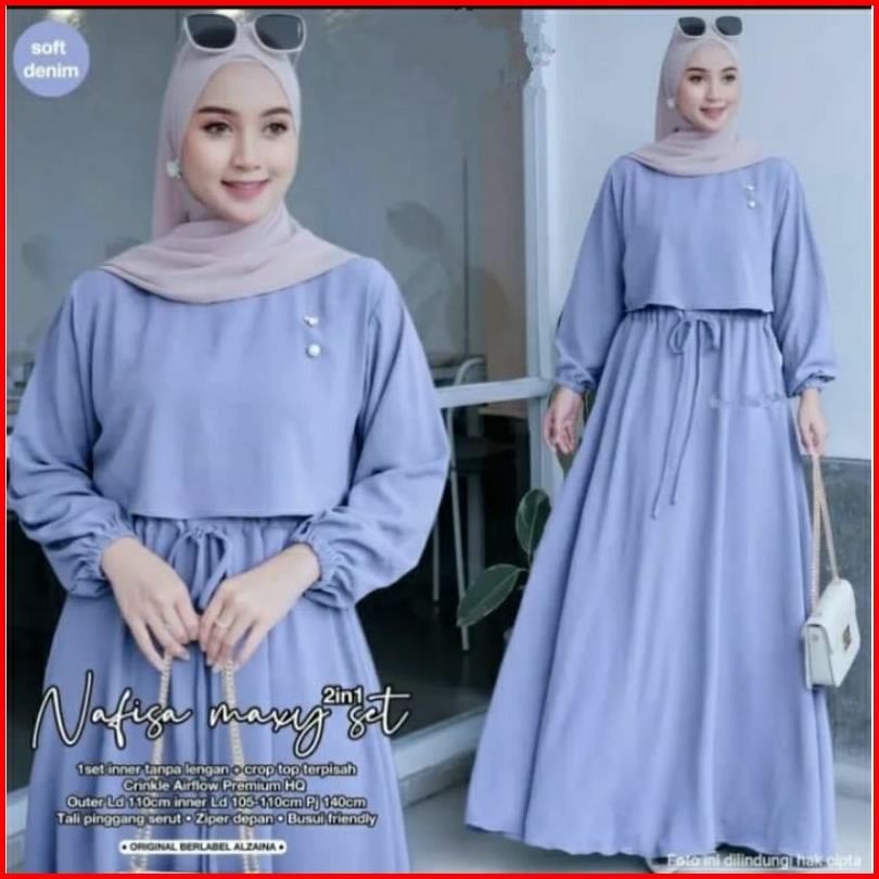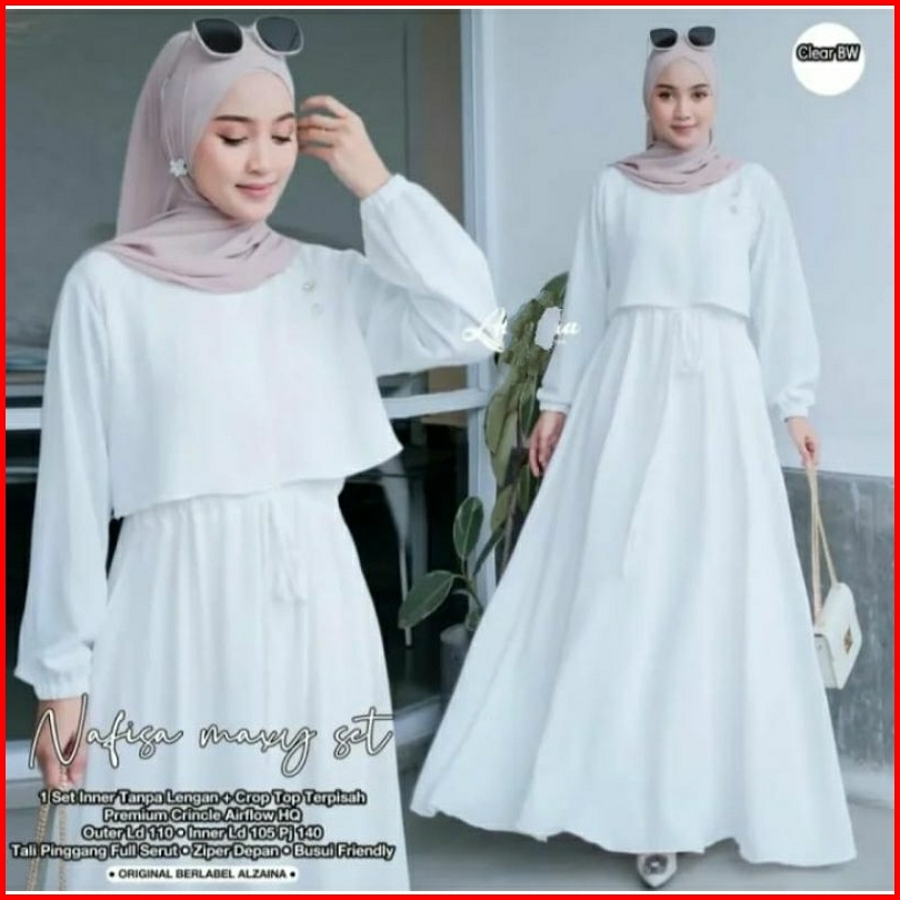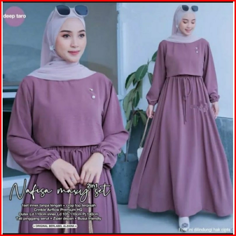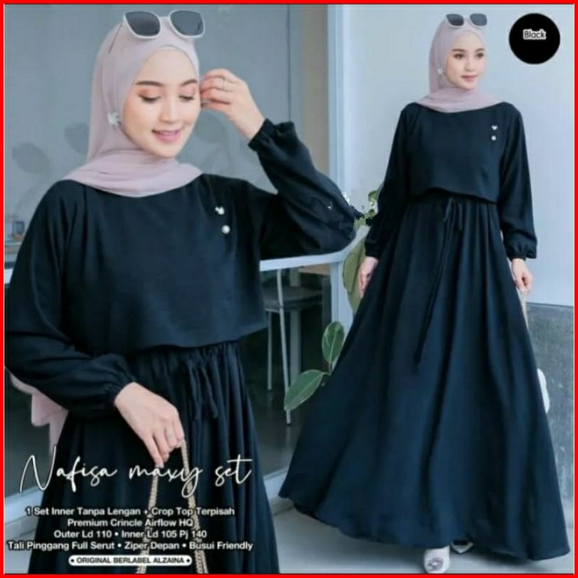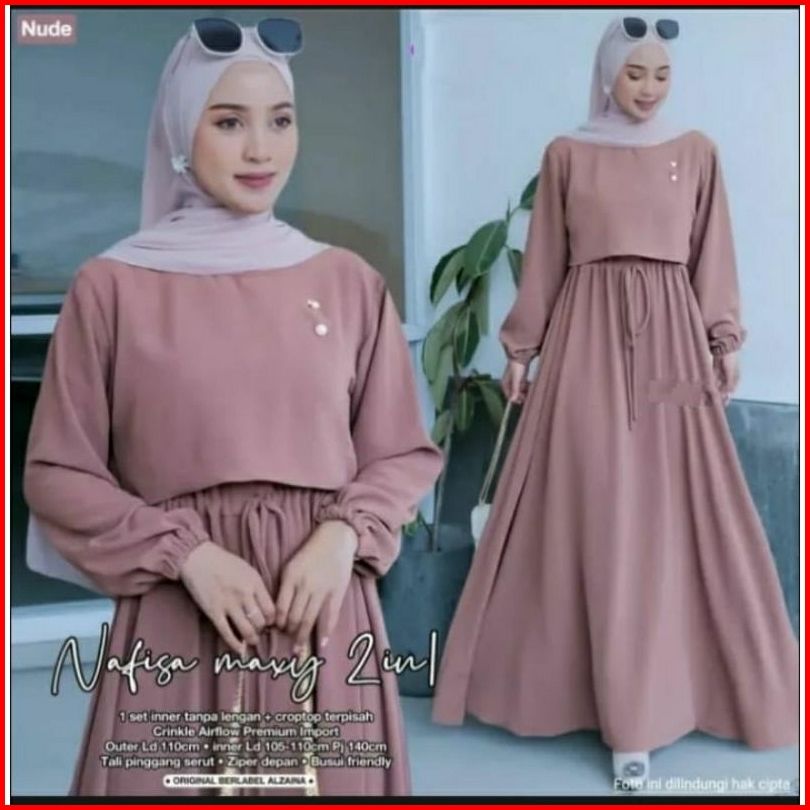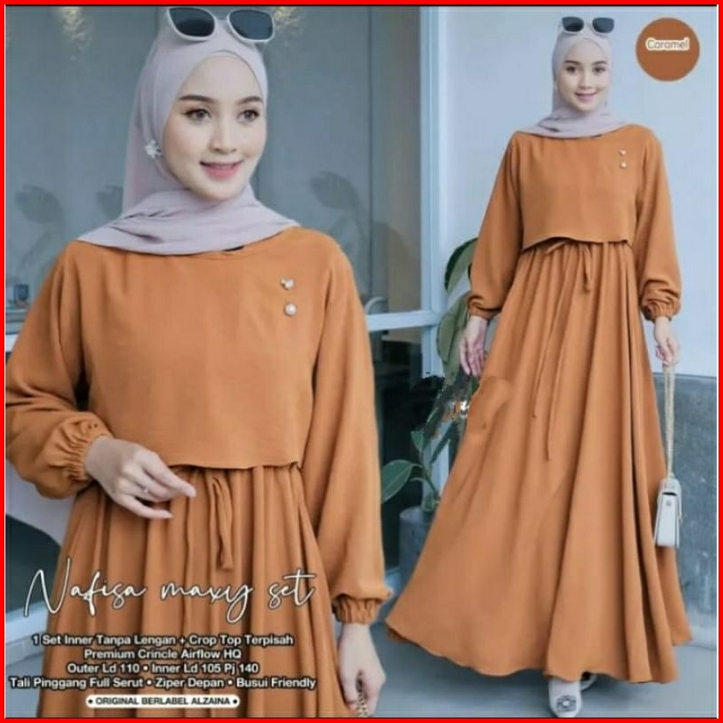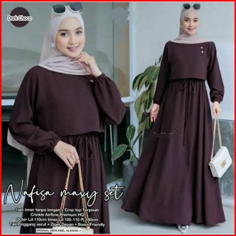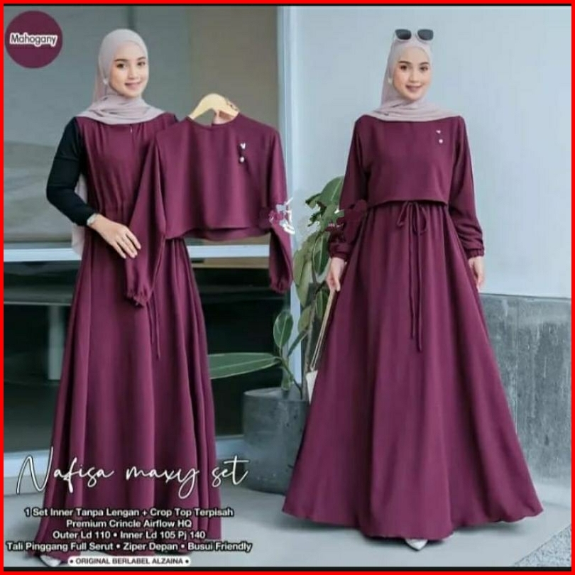 Nafisa Maxy Set 2in1 Inner Outer Crop Setelan Gamis Polos Terbaru 2023