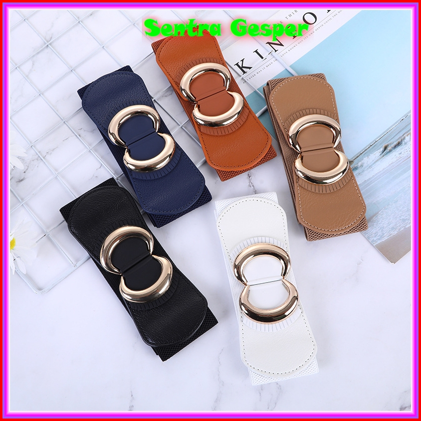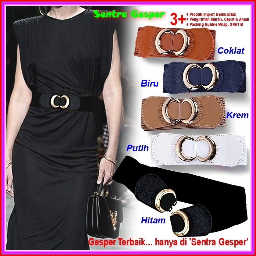 Gesper Ikat Pinggang Sabuk Karet Lebar Fashion Cewek Korea Wanita Obi Women Belt Kekinian Oby Gasper Hitam Cantik Murah