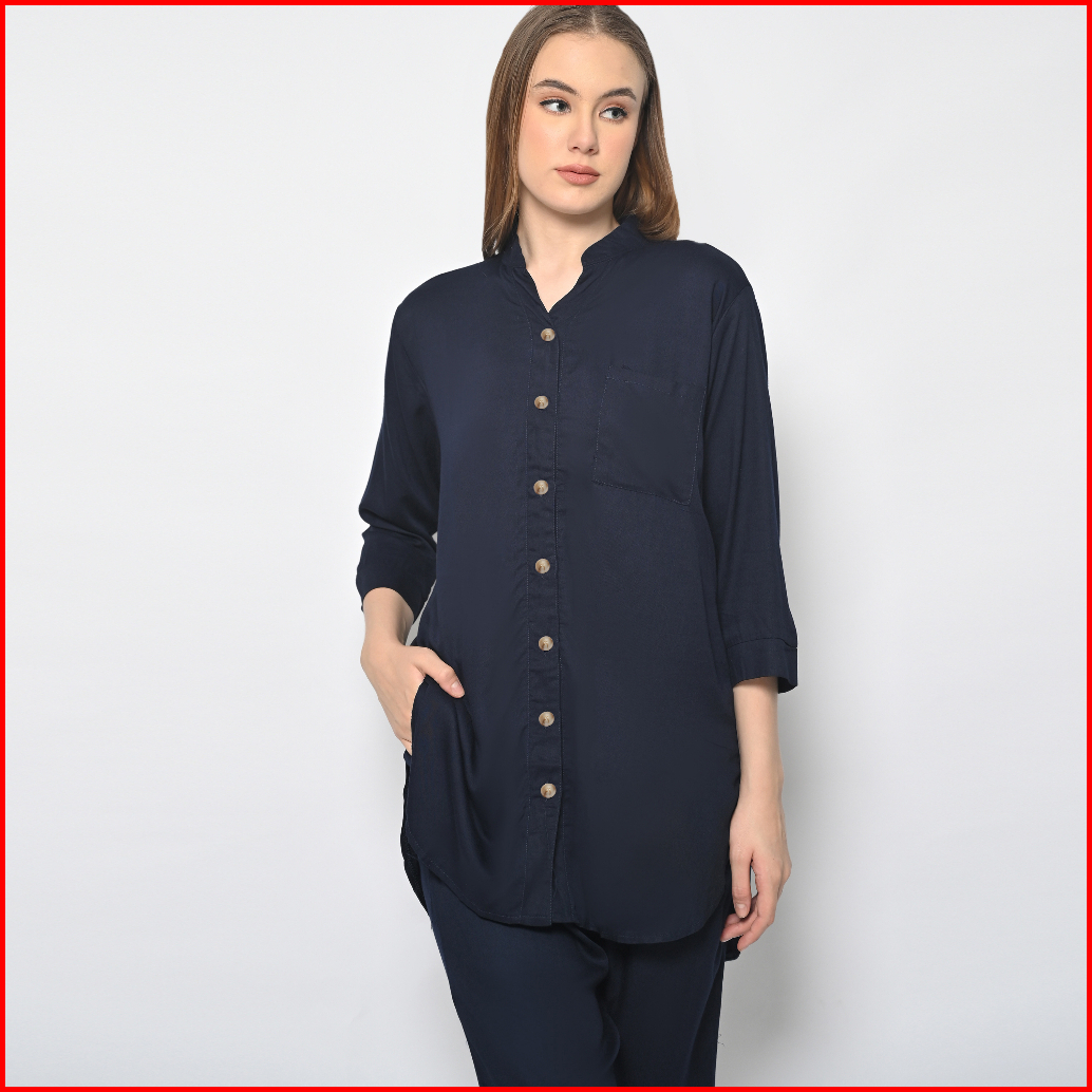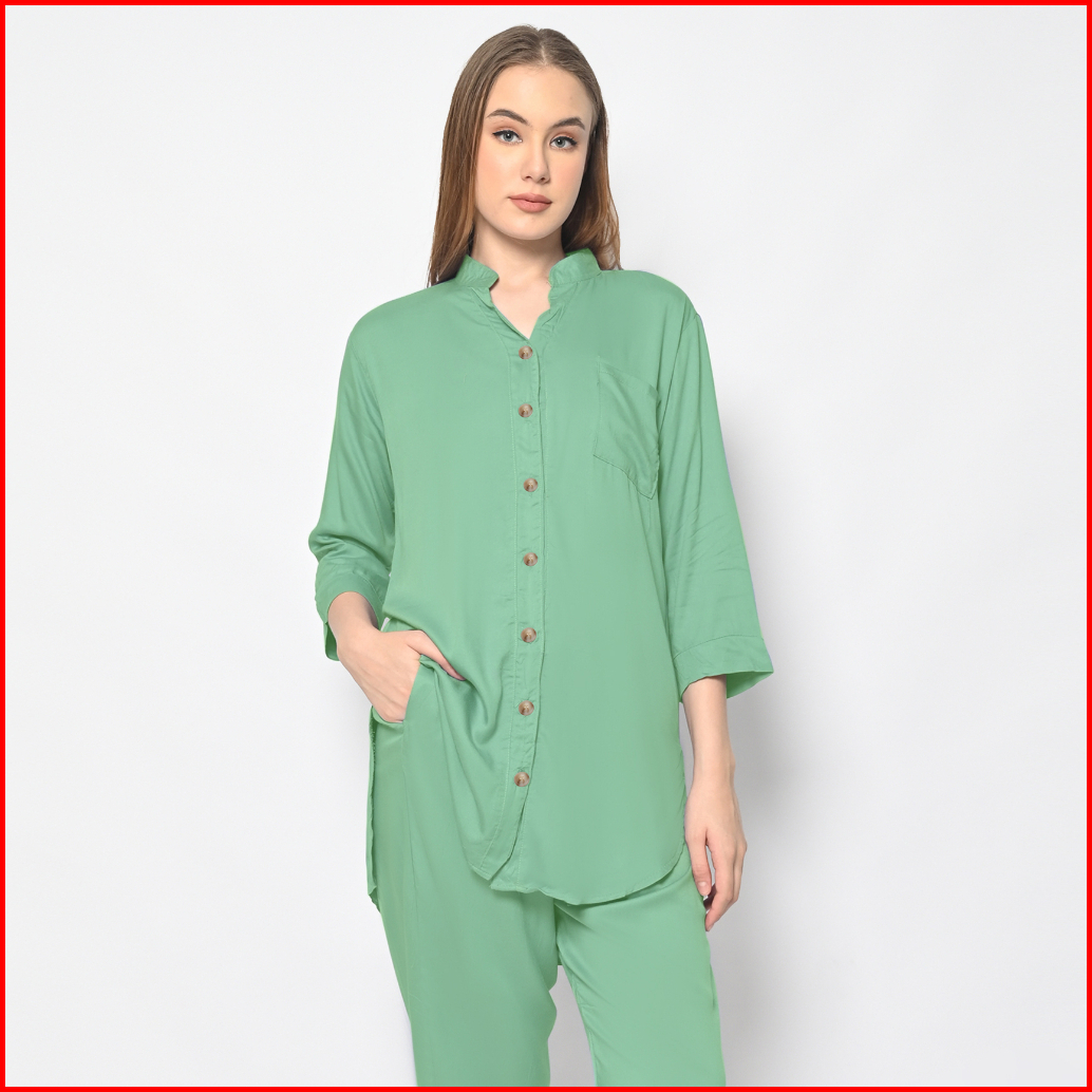 Queentin One-set 0086 Setelan Wanita Katun Rayon Twill Maxi Polos Lengan Panjang