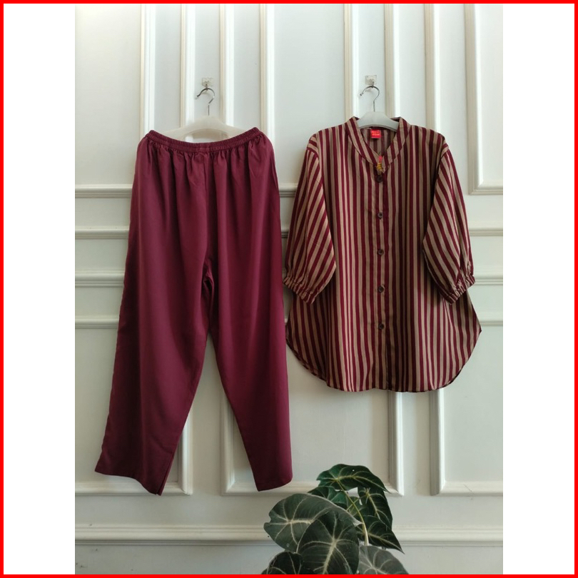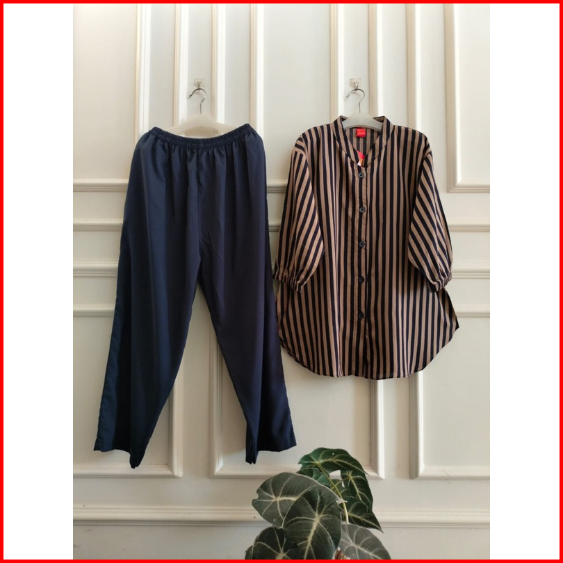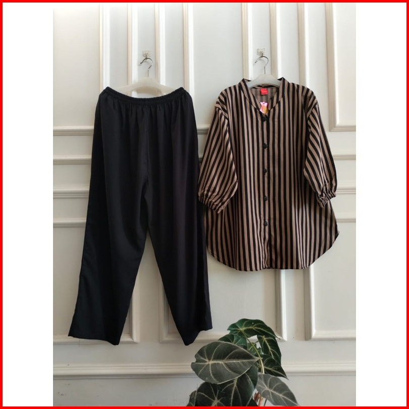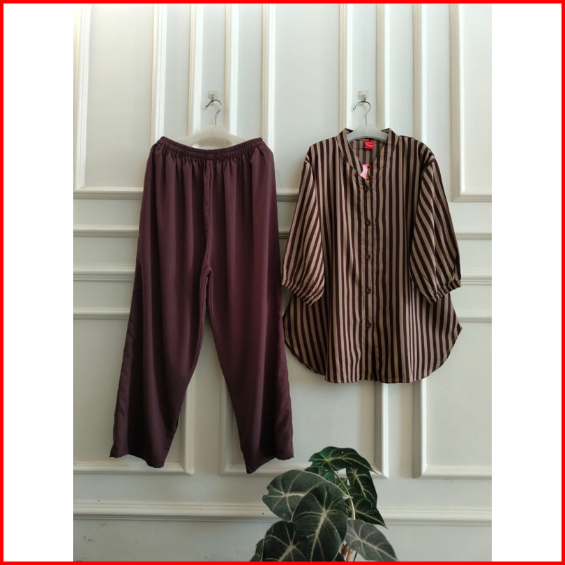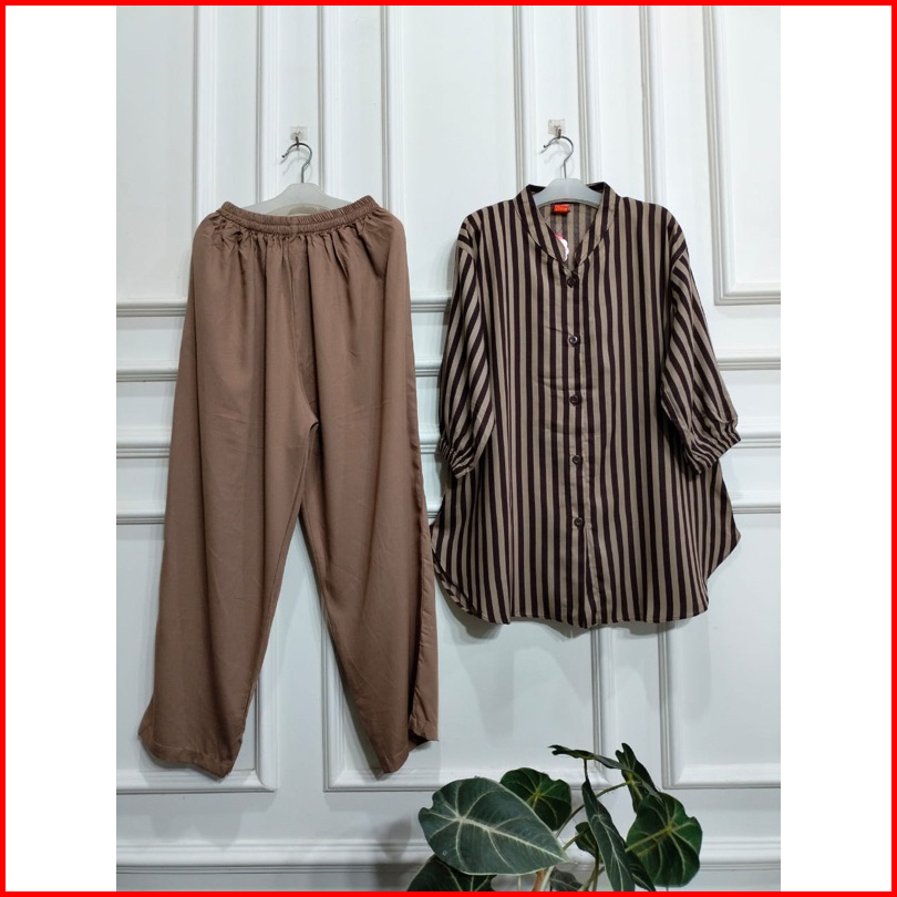 Set Wanita Bahan Rayon Motif Salur Kombinasi Set Kancing Hidup Salur Set Wanita Termurah Stelan Wanita Terbaru Termurah