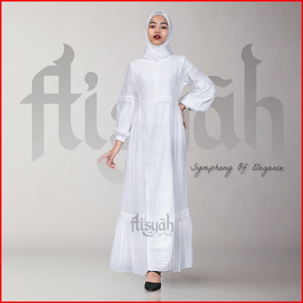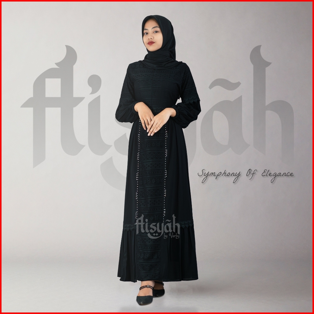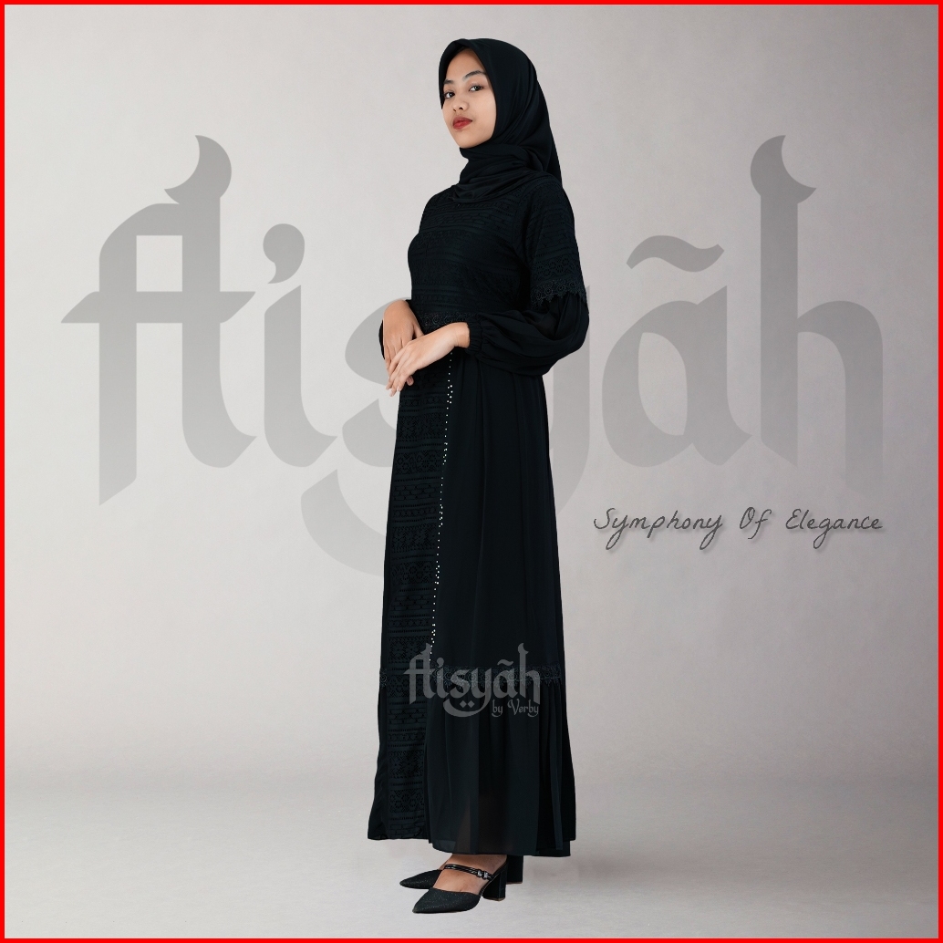 Aisyah057h Gamis Brukat Hitam Wanita Dewasa Busui Wudhu Friendly Simple Dan Elegan Pakai Tali Pinggng - Dress Tile Bokat