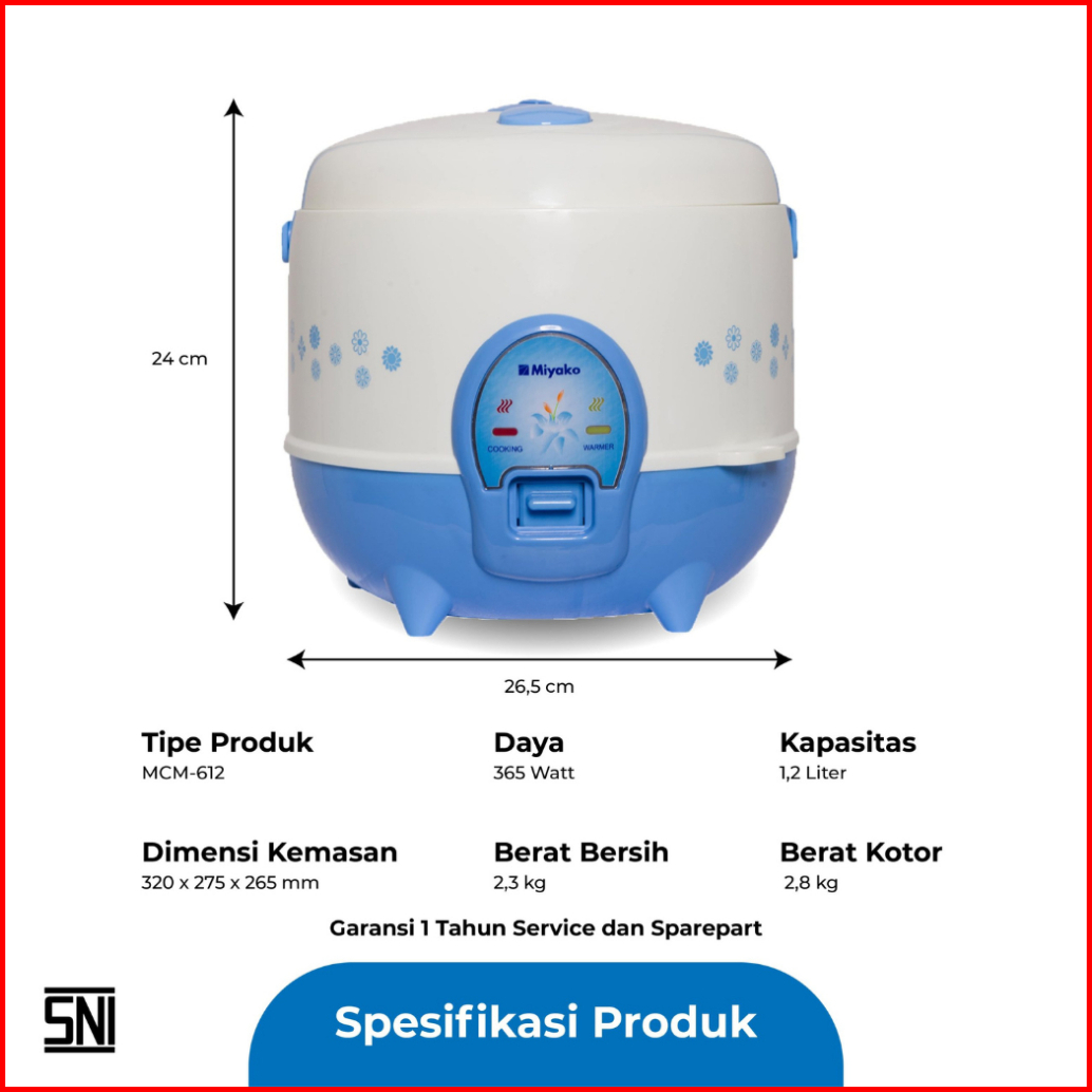 Miyako Rice Cooker Mcm-612 1.2 Liter Magic Warmer Penanak Nasi Mejikom Mini Low Watt Garansi Resmi