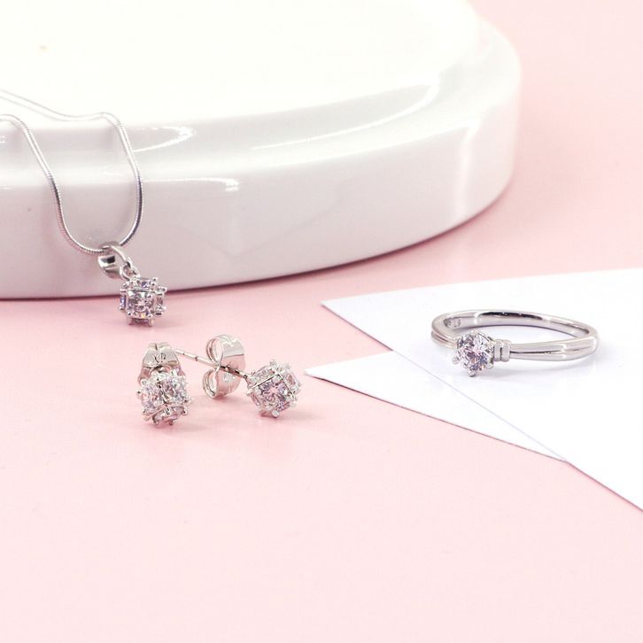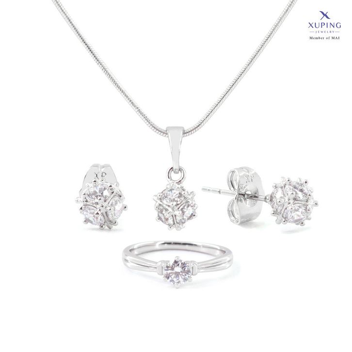 Xuping Perhiasan Set Perak Motif Kubus Cantik