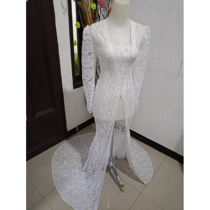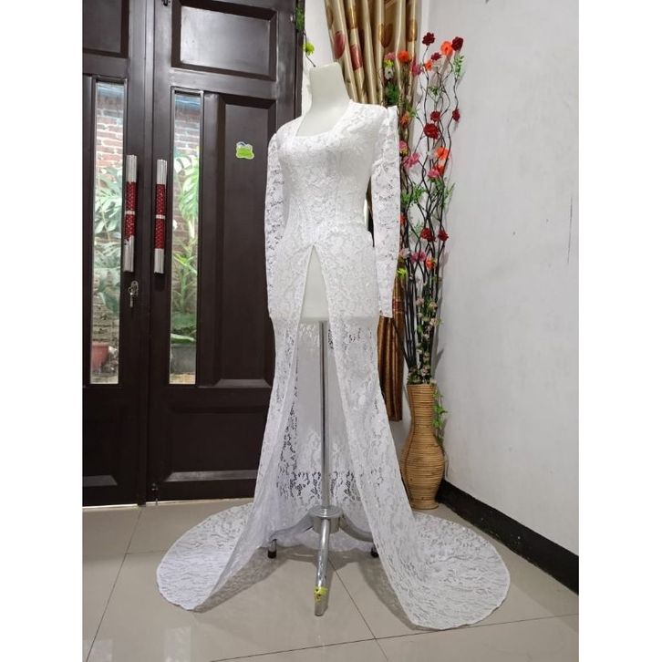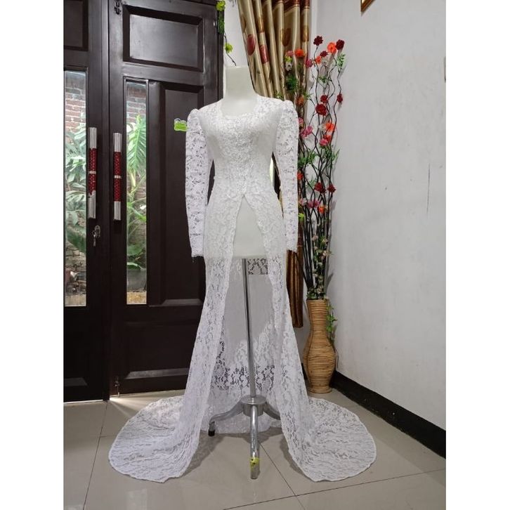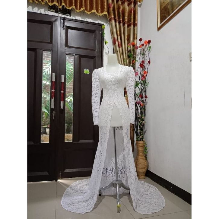 KEBAYA AKAD PENGANTIN Kebaya akad kutubaru putih bersih ngekor tanpa payet BEST SELLER TERLARIS