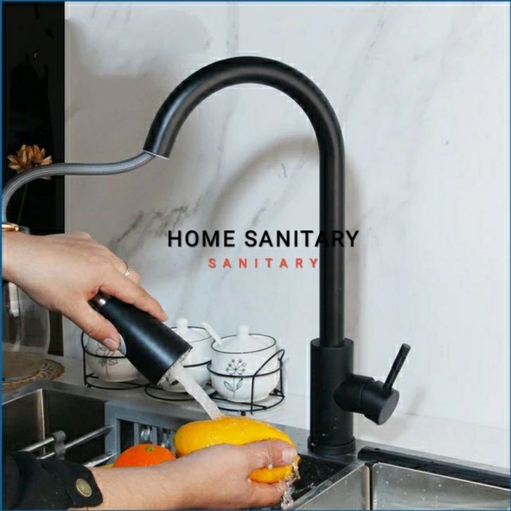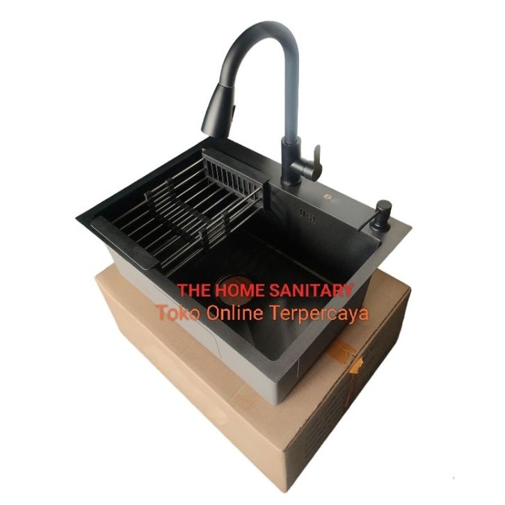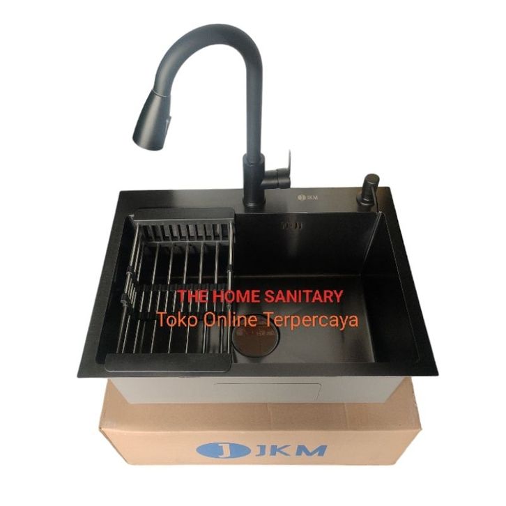 Paket Lengkap Kitchen Sink JKM 6045 BLACK Paket Kran Tarik Hitam