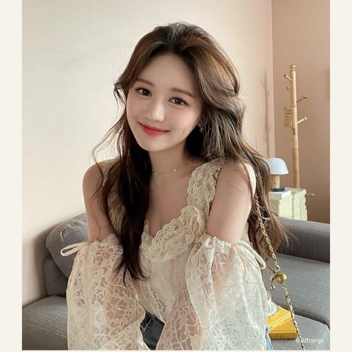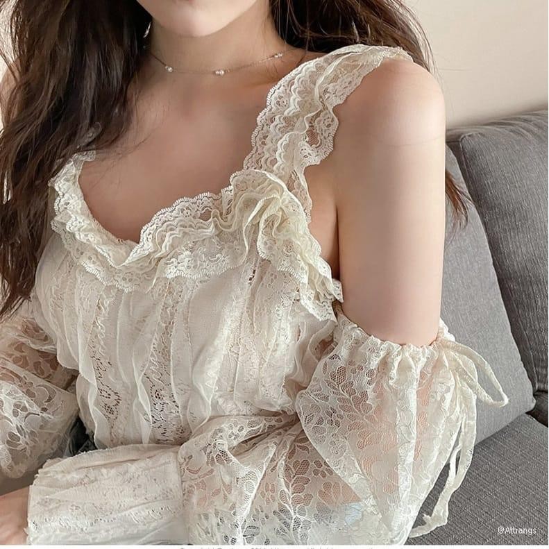 BLOUSE FURING WANITA YUMI LACE COLD SHOULDER BLOUSE IMPORT 1390 3M