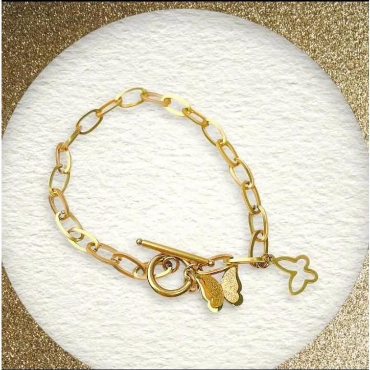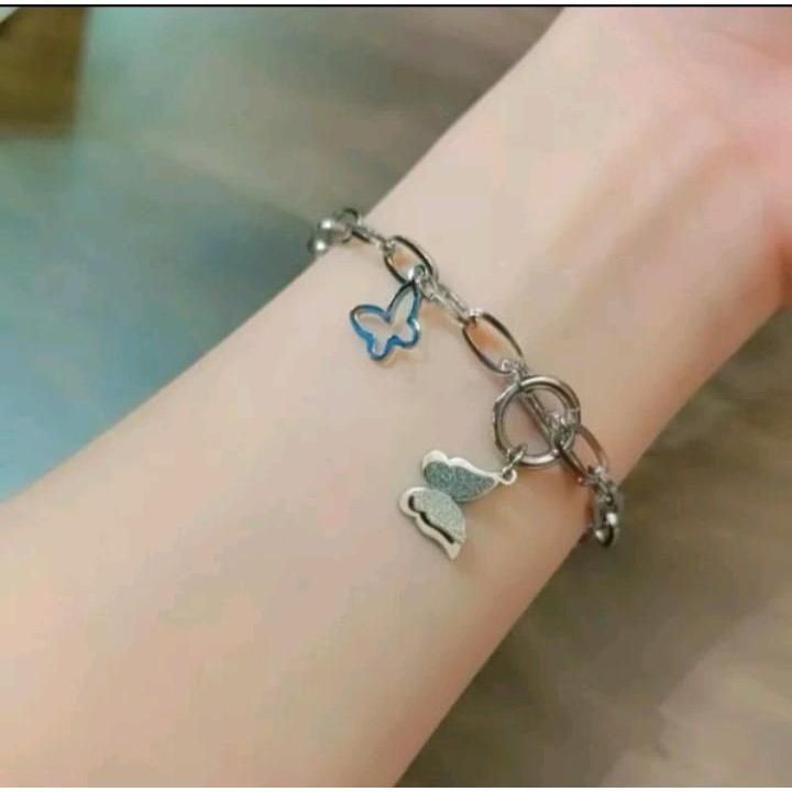 Gelang Tangan Wanita Pupperclip Kupu - Kupu Korean Style Anti Karat Premium