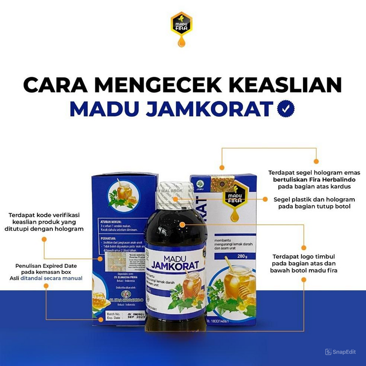 MADU JAMKORAT ASLI ORIGINAL MADU ASAM URAT DAN KOLESTEROL BPOM SIRUP HERBAL HONEY 280GRAM