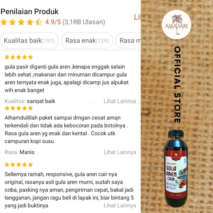Gula Aren Cair / Syrup Palm Sugar Organik Alka Sari 1 Liter