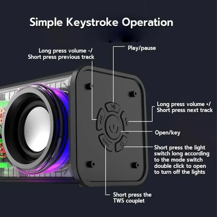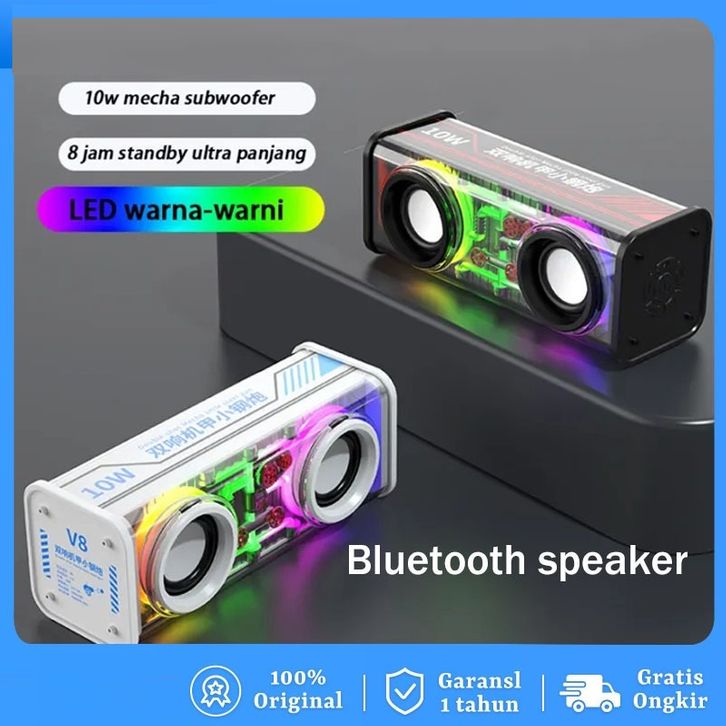 Cyberpunk Bluetooth Speaker 10W Double Subwoofer Music Speaker RGB LED Light Transparent Mecha Speaker V8 Speaker Blueto