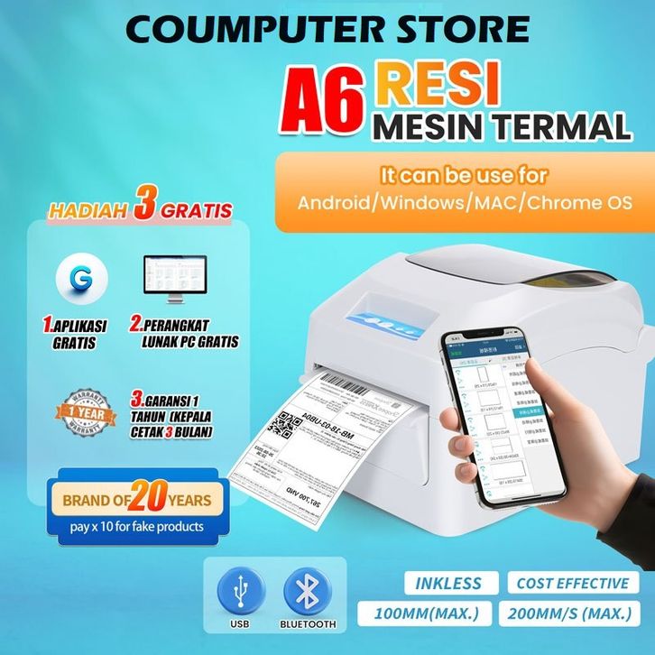 MESIN CETAK LABEL STIKER RESI 4 INCI AND 3 INCI BARCODE PRINTER THERMAL WAYBILL USB+BLUETOOTH ORIGINAL