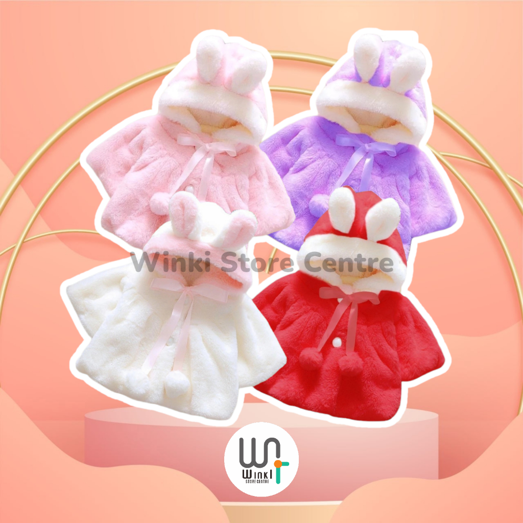 JAKET BAYI ANAK PEREMPUAN IMPORT BULU TEBAL MANTEL HOODIE BABY GIRL