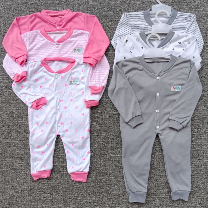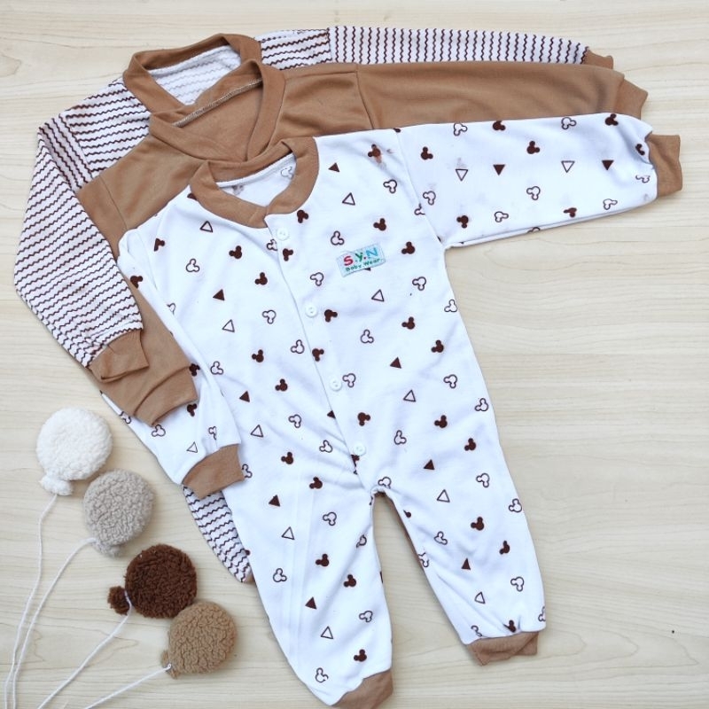 3PC BAJU JUMPER PANJANG BAYI SLEEPSUIT 0-3BULAN DAN 3-6BULAN