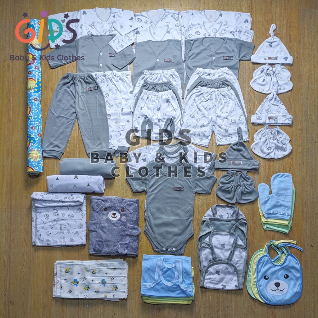 65 PCS PAKET BAJU BAYI BARU LAHIR LAKI LAKI / PEREMPUAN LENGKAP DAN KOMPLIT GIDS BABY KIDS NEWBORN HAMPERS PREMIUM