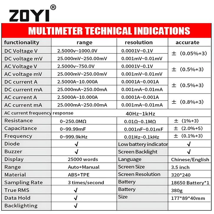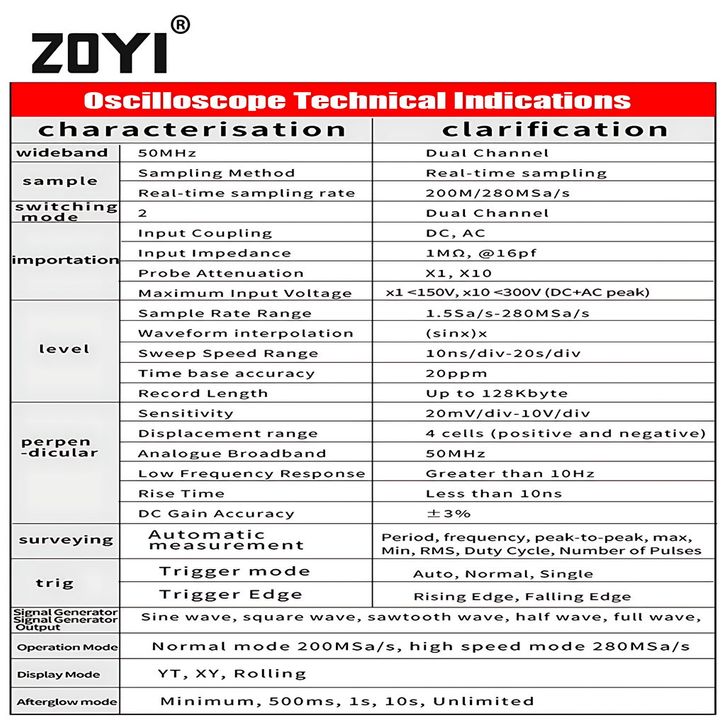 Zoyi Zt-703s Digital Oscilloscope Multimeter 50mhz Bandwidth Generator