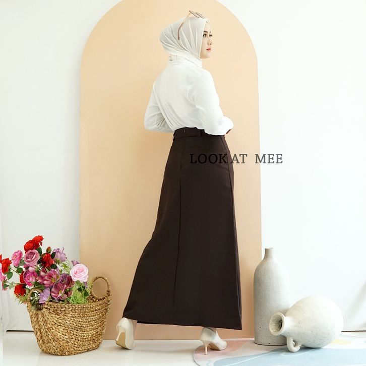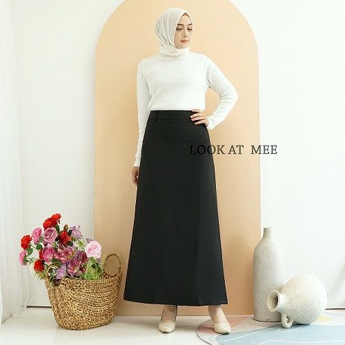 Rok A Line panjang hitam pekat anti kusut ada Pinggang Karet & kantong
