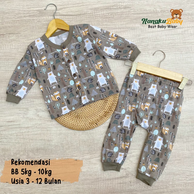 NANAKU BABY - SET PIYAMA BAYI PANJANG KANCING DEPAN MOTIF PRINTING POHON LANDAK USIA 3-12 BULAN