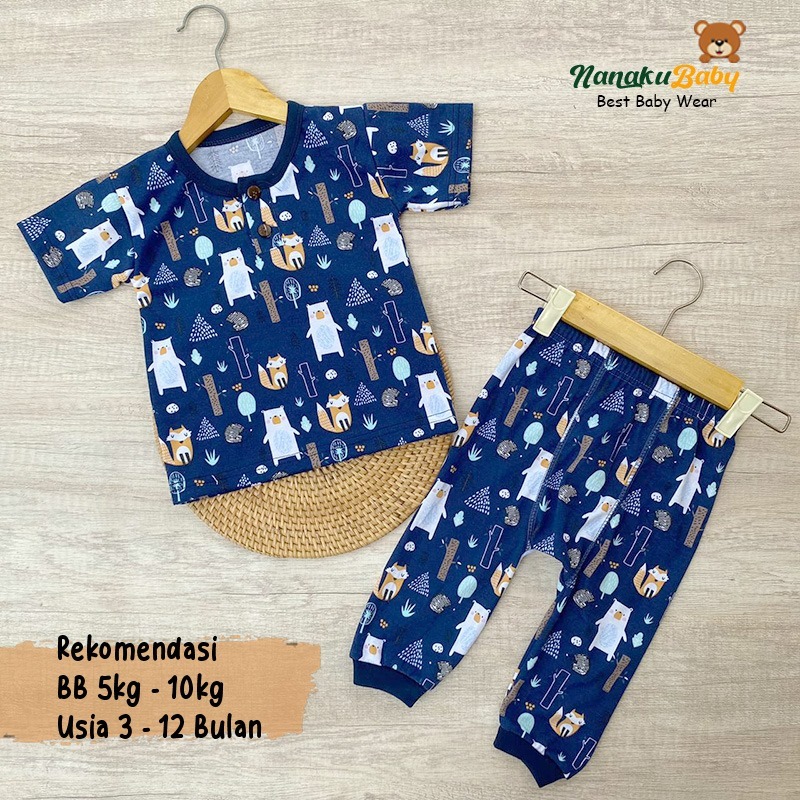 NANAKU BABY - ( PRINTING POHON LANDAK ) SET BAJU BAYI KANCING DEPAN CELANA DIAPERS USIA 3-12 BULAN