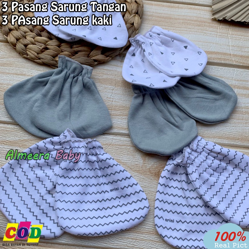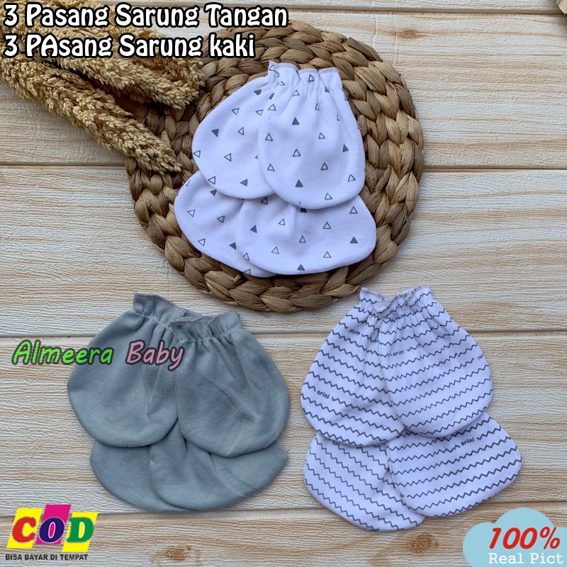 3 PCS SARUNG TANGAN 3 PCS SARUNG KAKI KAOS KAKI BAYI BARU LAHIR ALMEERA BABY AND KIDS