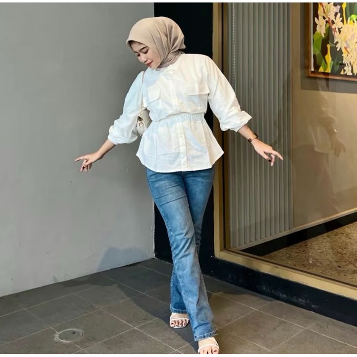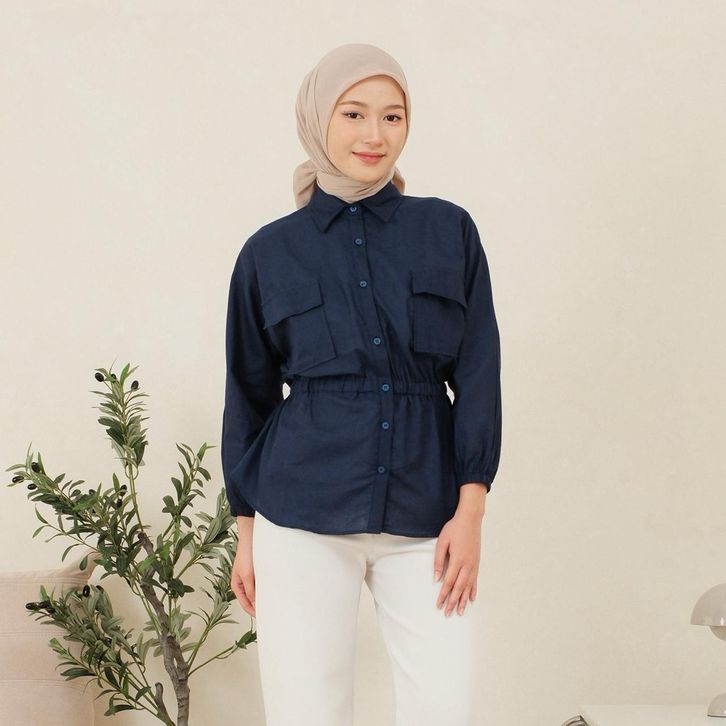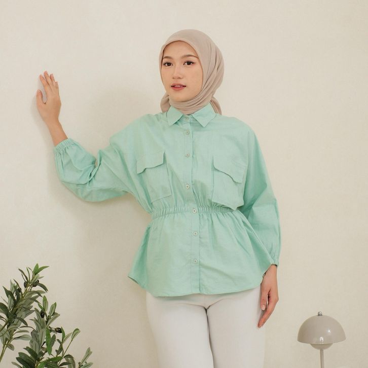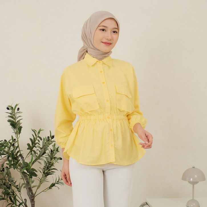 BAJU WANITA BEENA LINEN MODEL KERUT BAGIAN PERUT