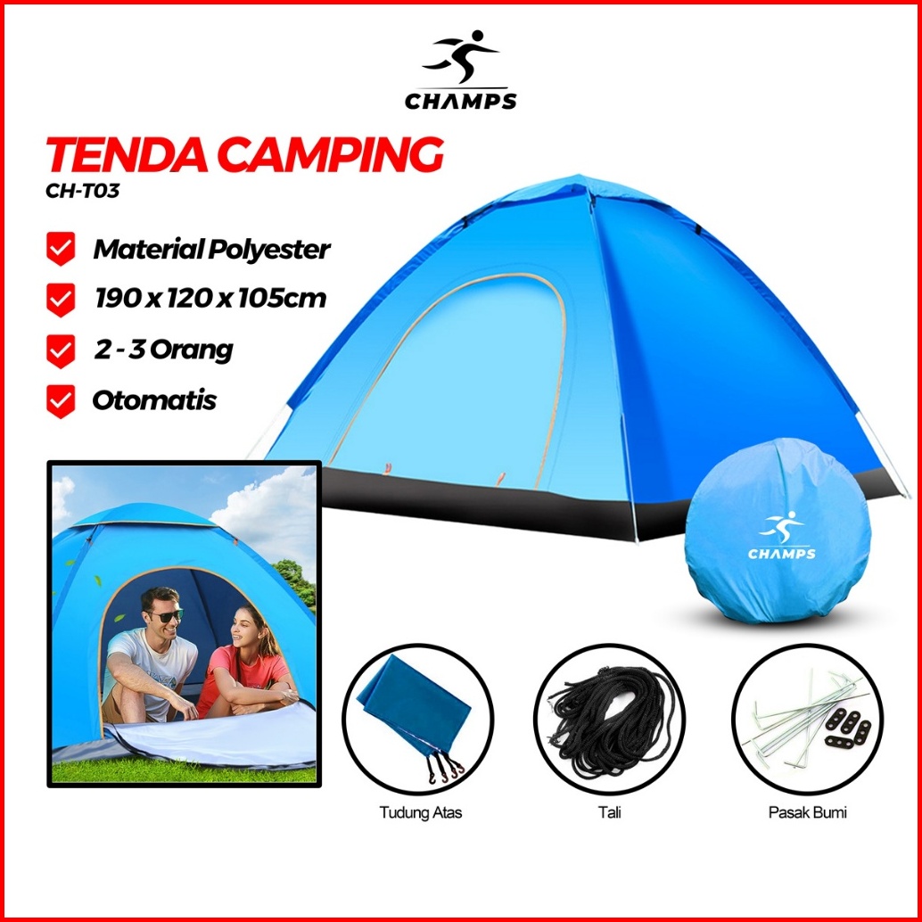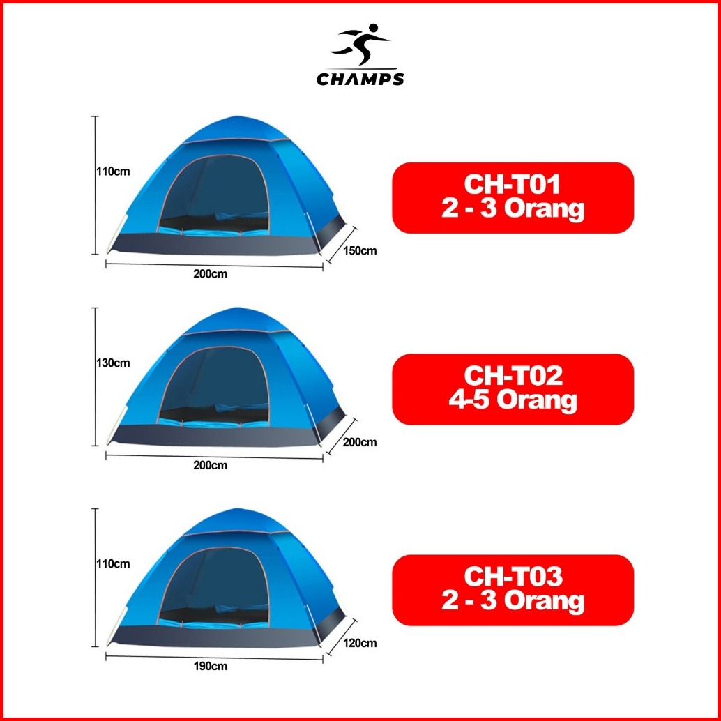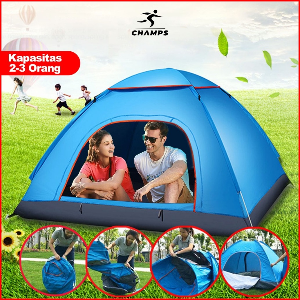 Champs 190cm 120cm Otomatis Tenda Camping Biru Kapasitas 1-3 Orang Gunung Otomatis Outdoor Indoor