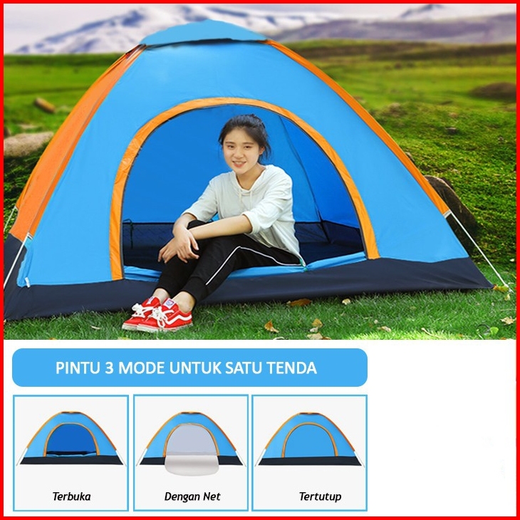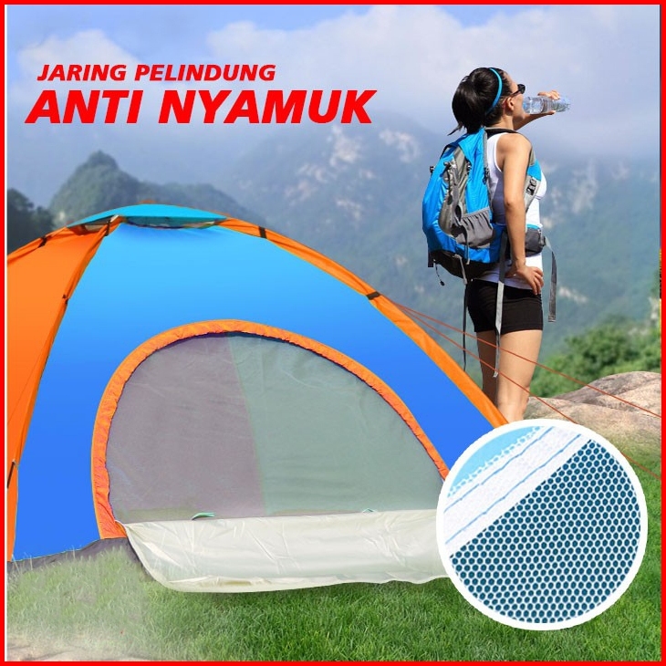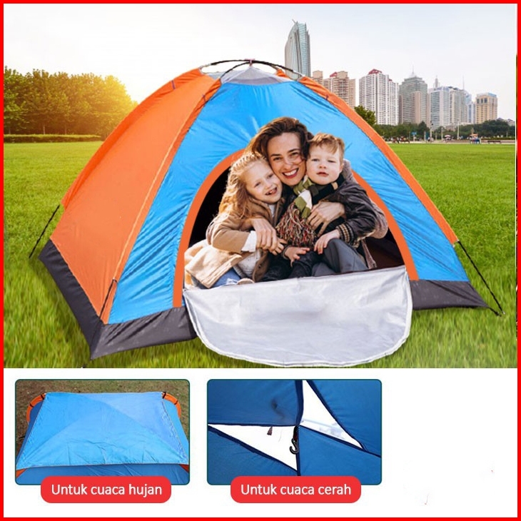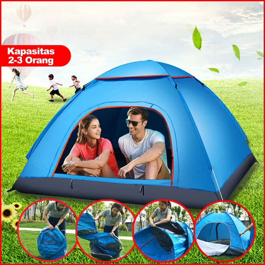 Portable Waterproof Camping Tent Tenda Camping 2mx2mx1.2m Luas 3-4 Orang Kebutuhan Semalam Yang Liar