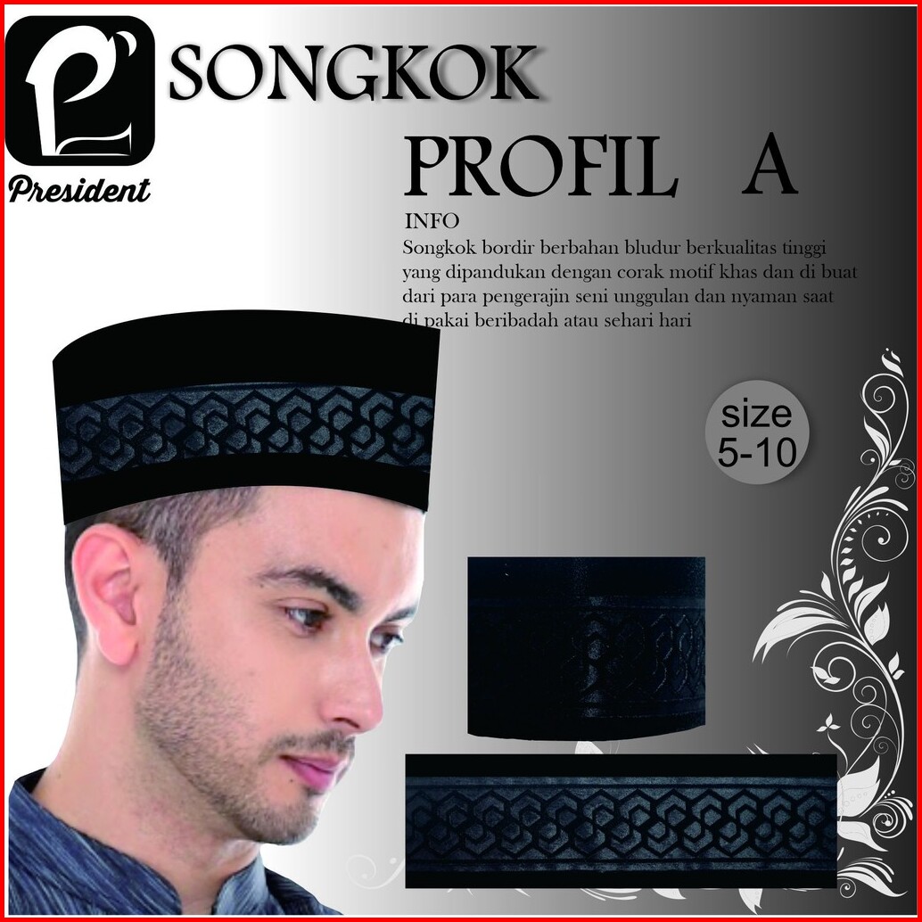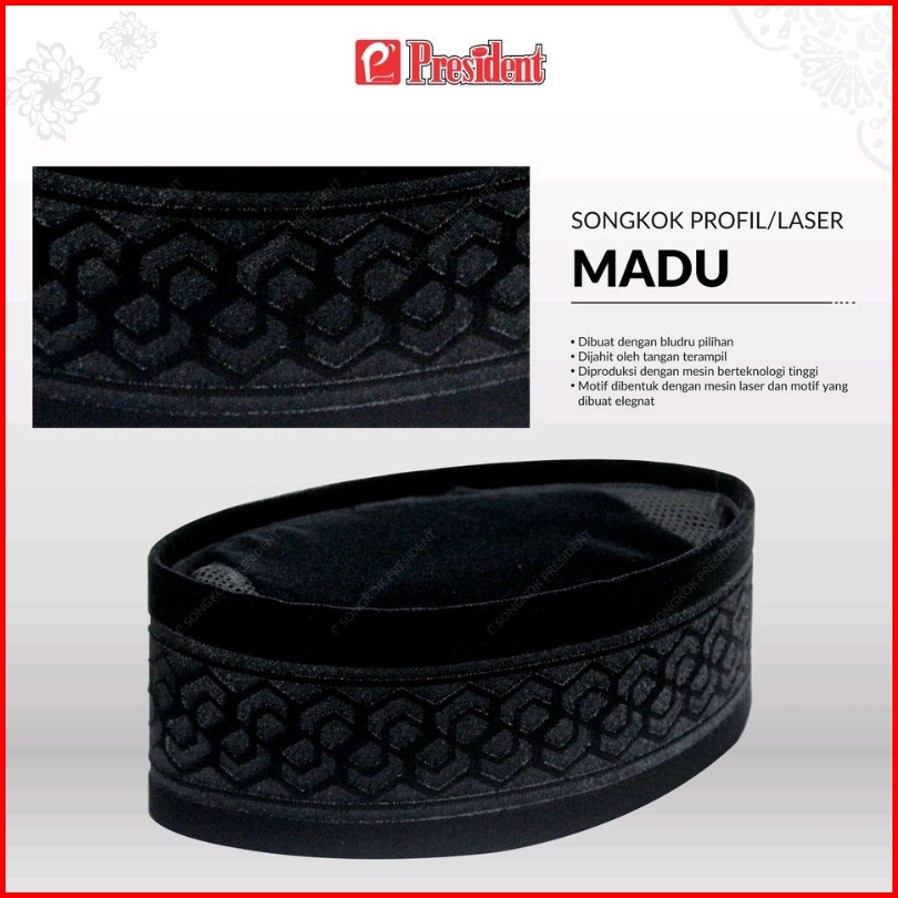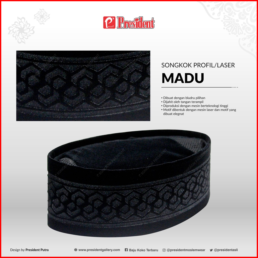 President - Songkok Hitam Peci Hitam Kopiah Hitam Motif Profil Tipe Madu Profil A Beludru Premium