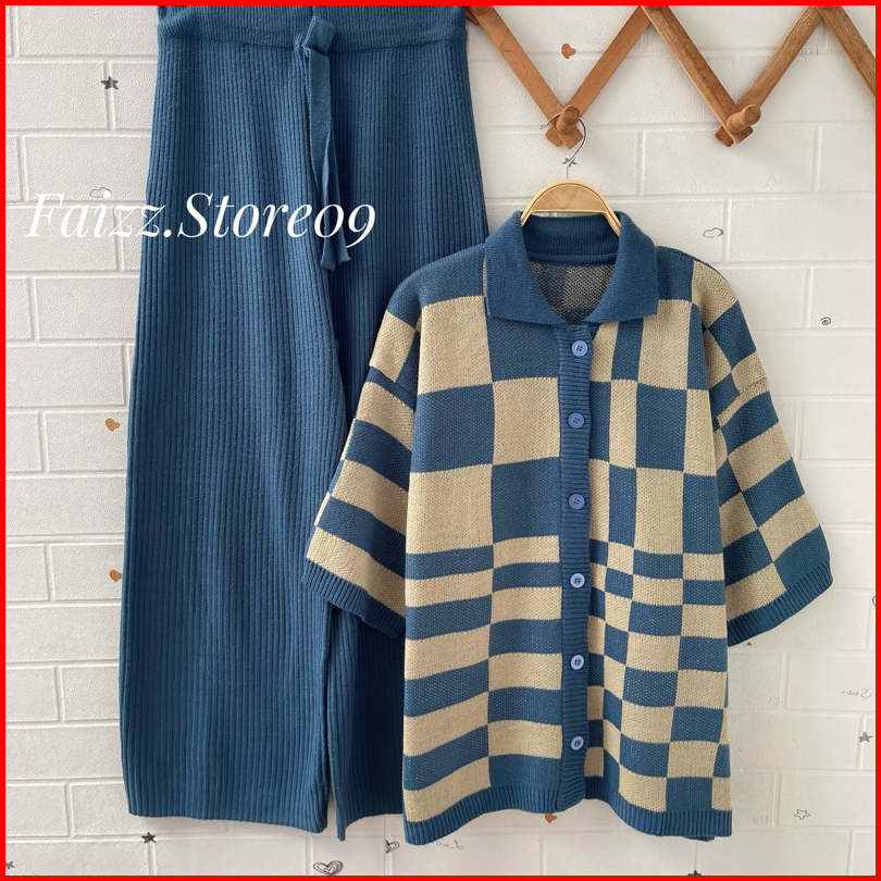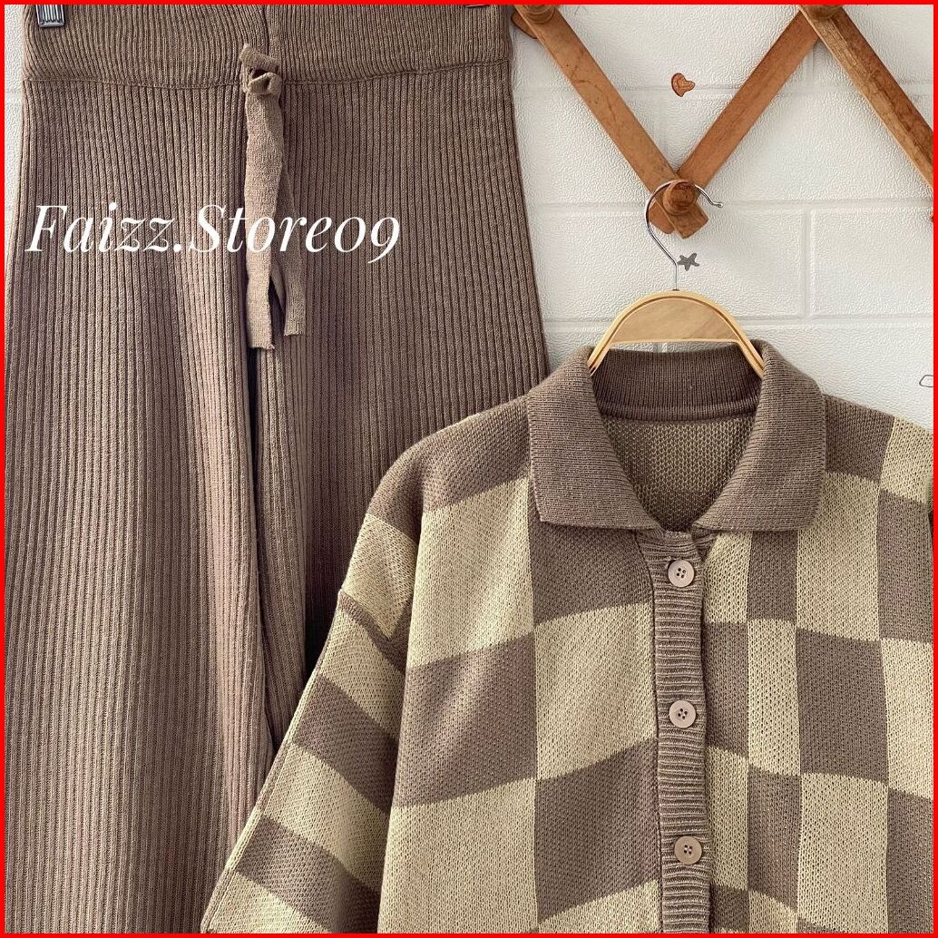 Oneset Knitwear Outfit Fuji Setelan Celana Kulot Rajut Wanita Premium Kekinian