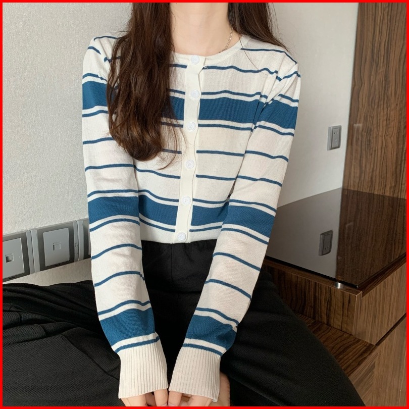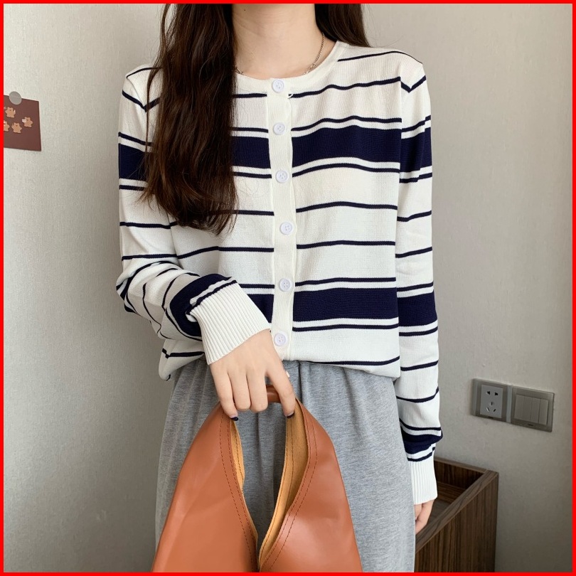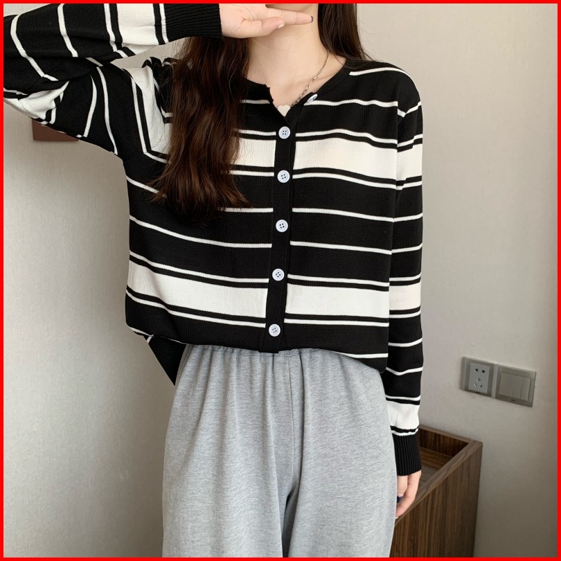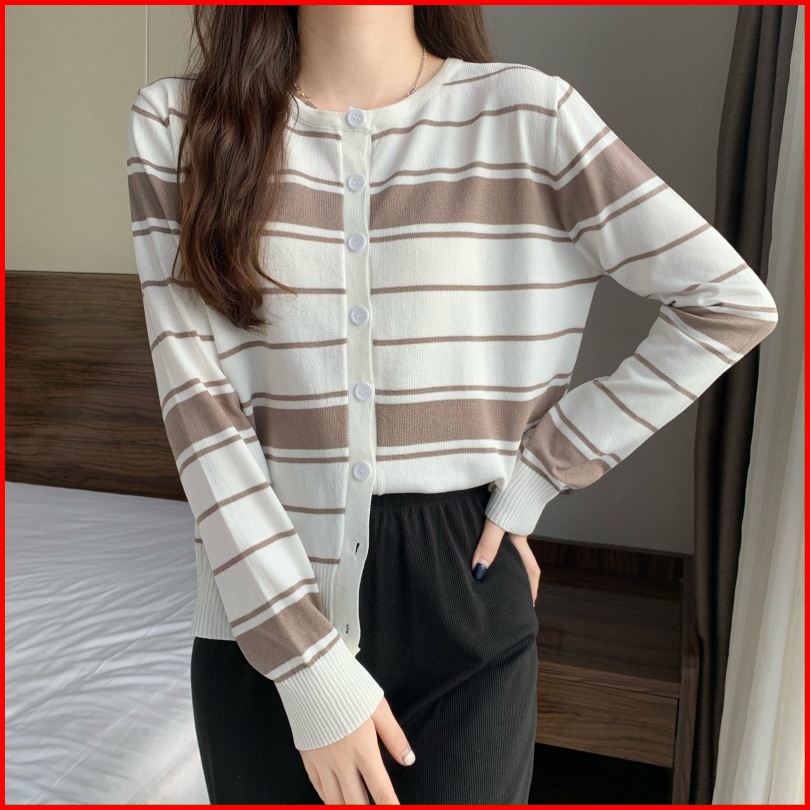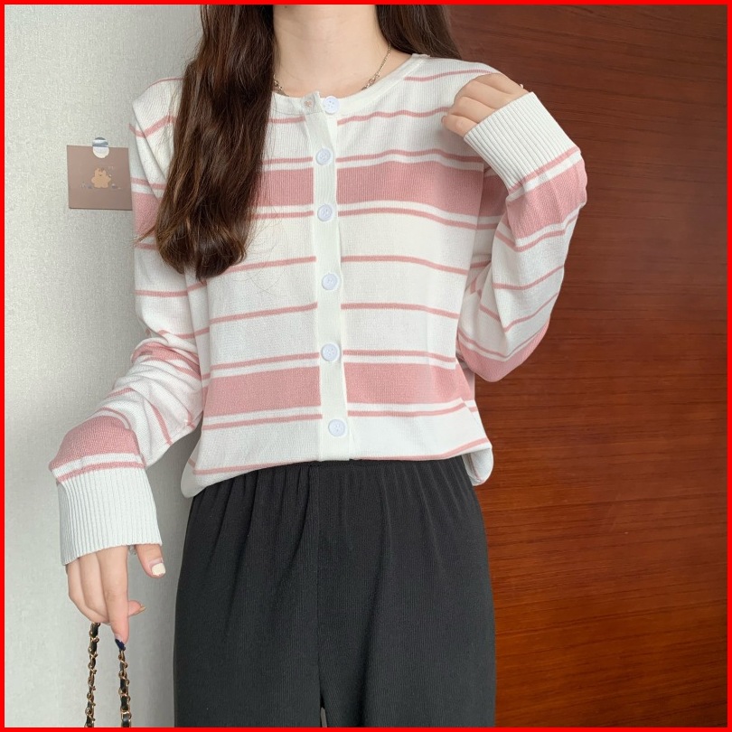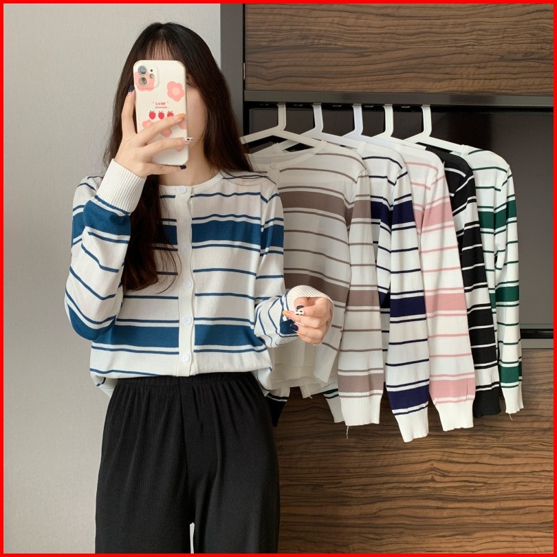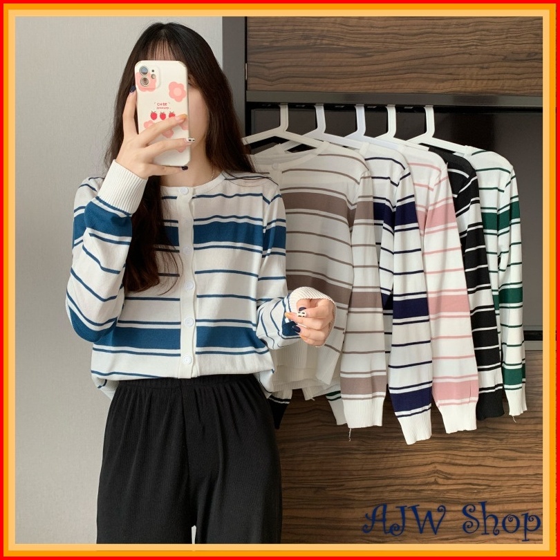 Ajw Cardigan Korean Style Rajut Salur Import Premium Xaf Atasan Wanita Korean Style Kekinian Fashion Wanita Knit