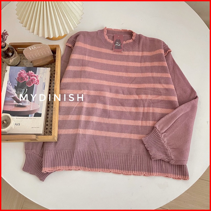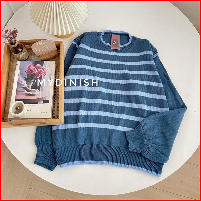 Febrina Curly Blouse - Atasan Blouse Wanita Motif Garis Korean Style