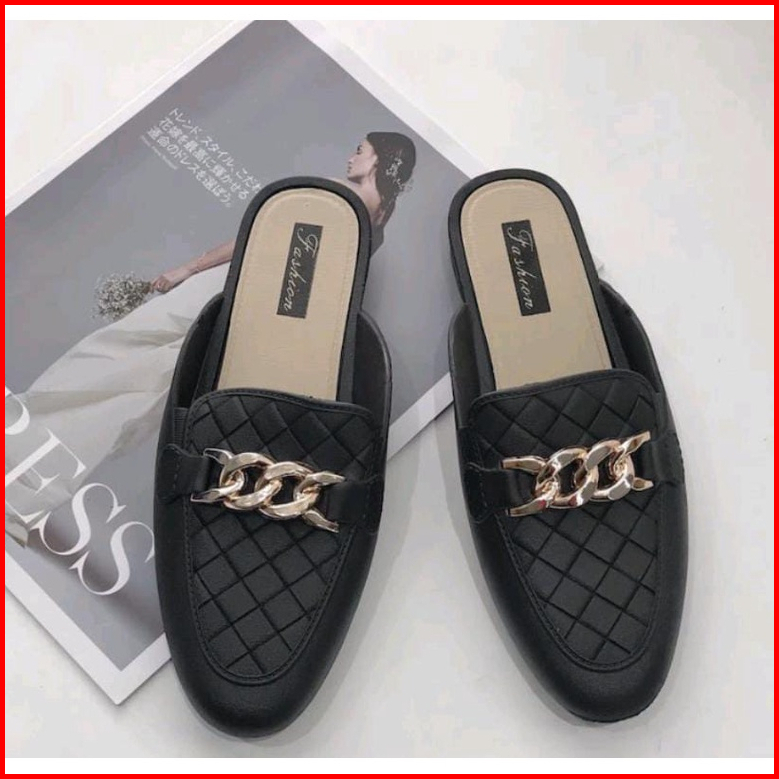 Sepatu Sendal Selop Jelly Laluna 1609-1 Aksesoris Rantai Slip Onteplek Karet