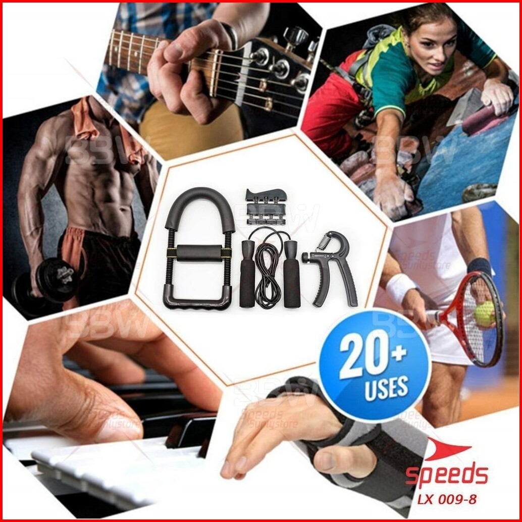 Speeds Alat Fitness Set Power Wrist Handgrip 4in1 Skipping Finger Exercise Alat Fitness Alat Gym Satu Set Hand Grip Set