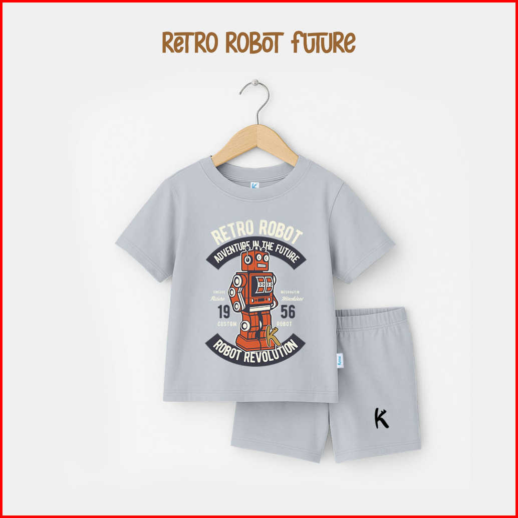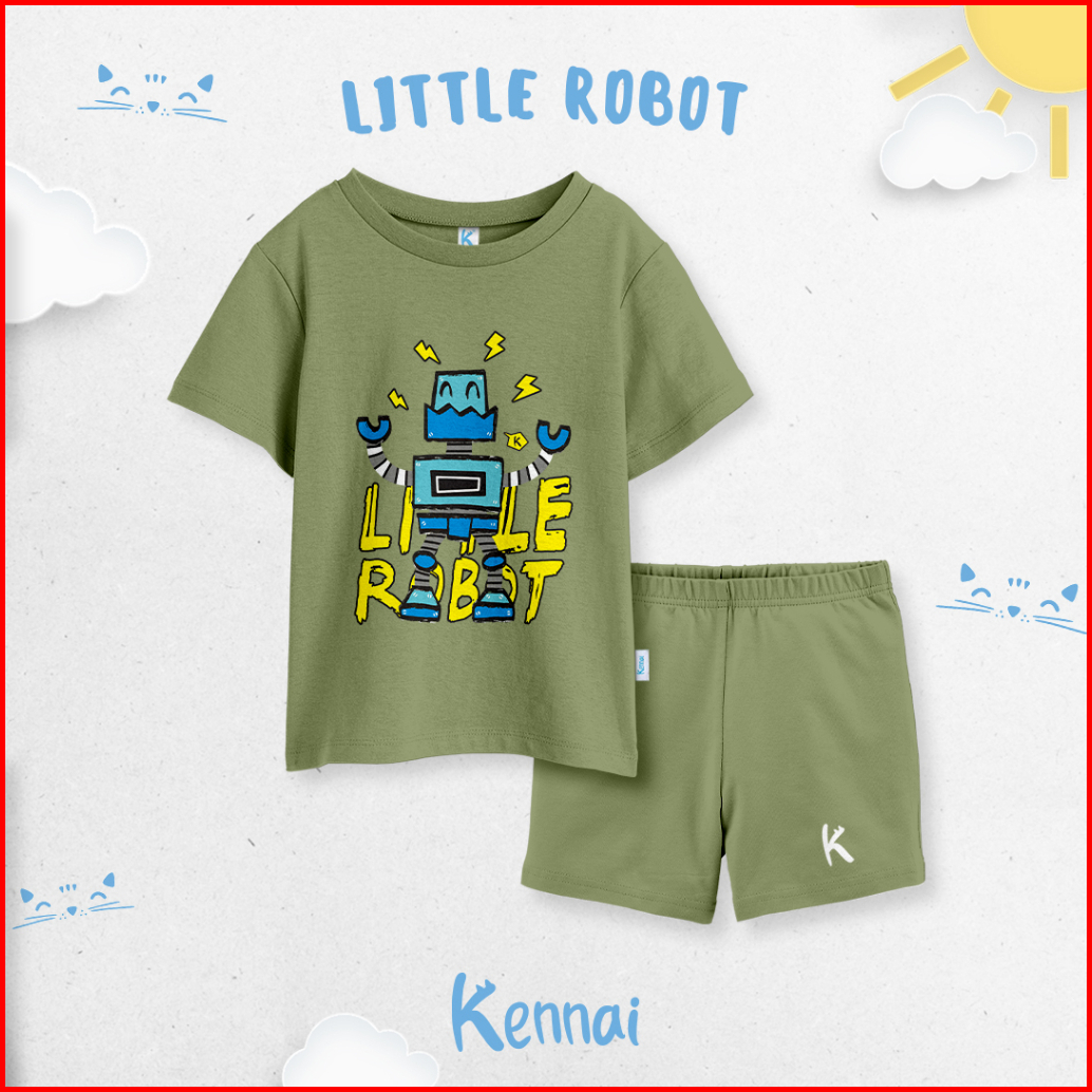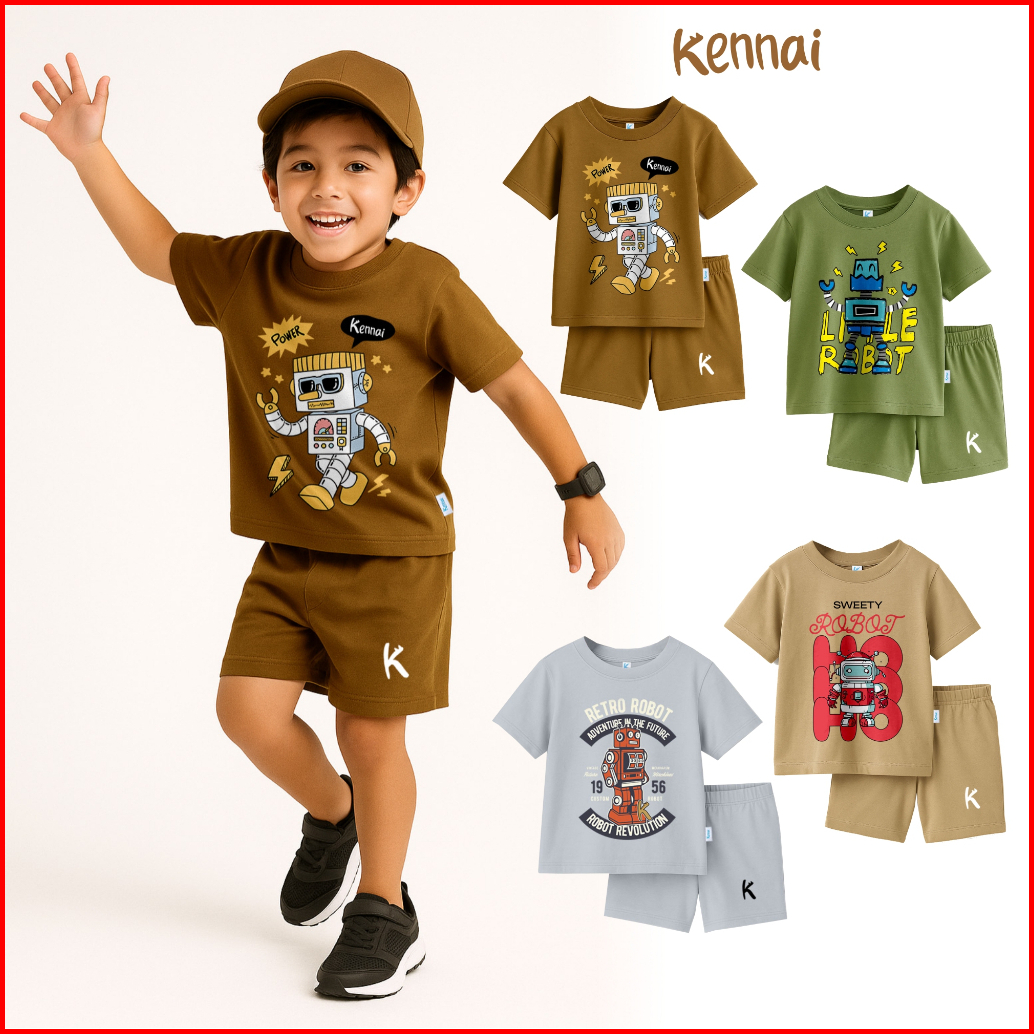 Kennai Set Kaos Anak Lengan Pendek Little Robot 1-13 Tahun