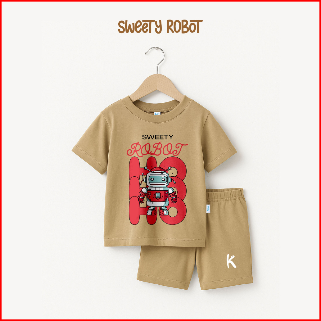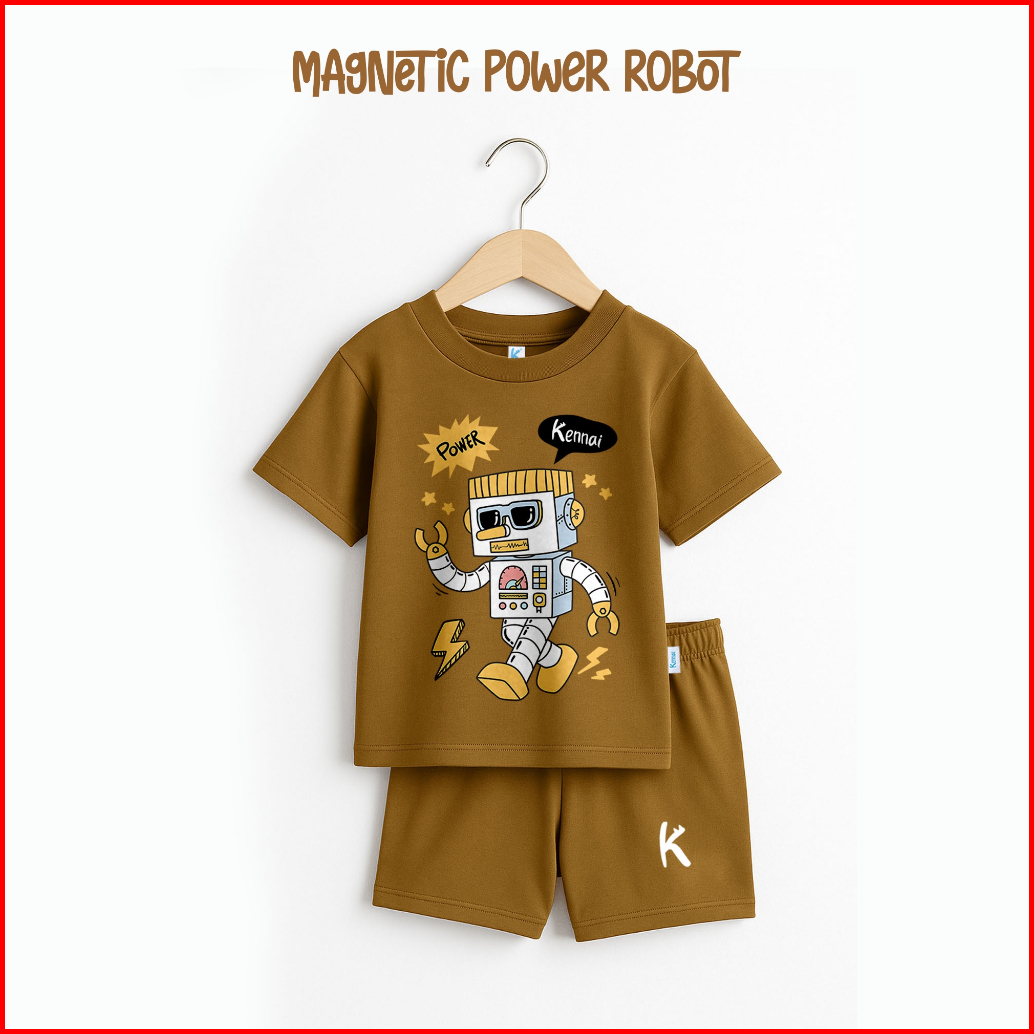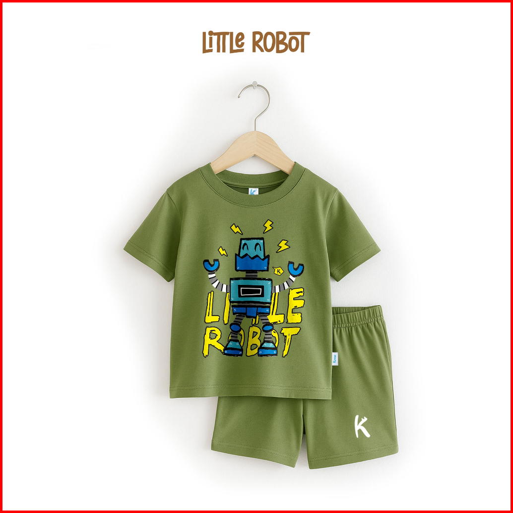 Kennai Set Kaos Anak Lengan Pendek Little Robot 1-13 Tahun