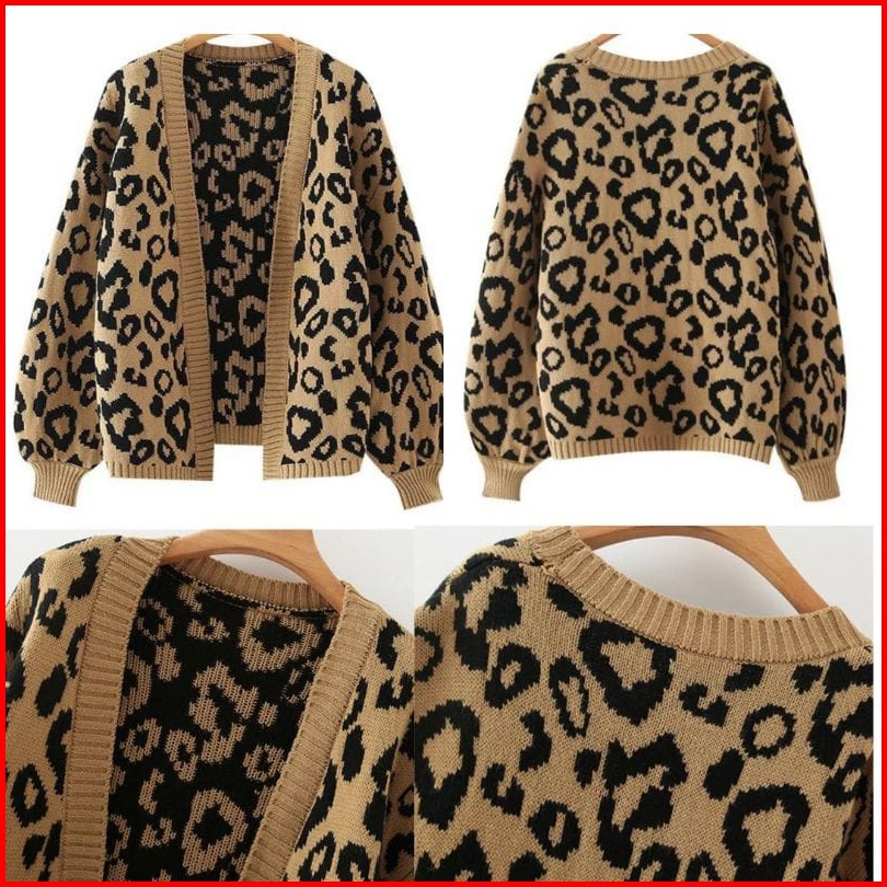 Cardigan Rajut Leopard Pakaian Rajut Cardigan Rajut Premium Cardigan Rajut Motif Korean Style