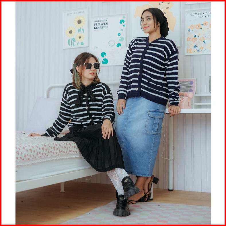 Haylook.id Lalisa Knit Cardy Cardigan Stripe Wanita Bahan Rajut Premium Tebal Korean Style
